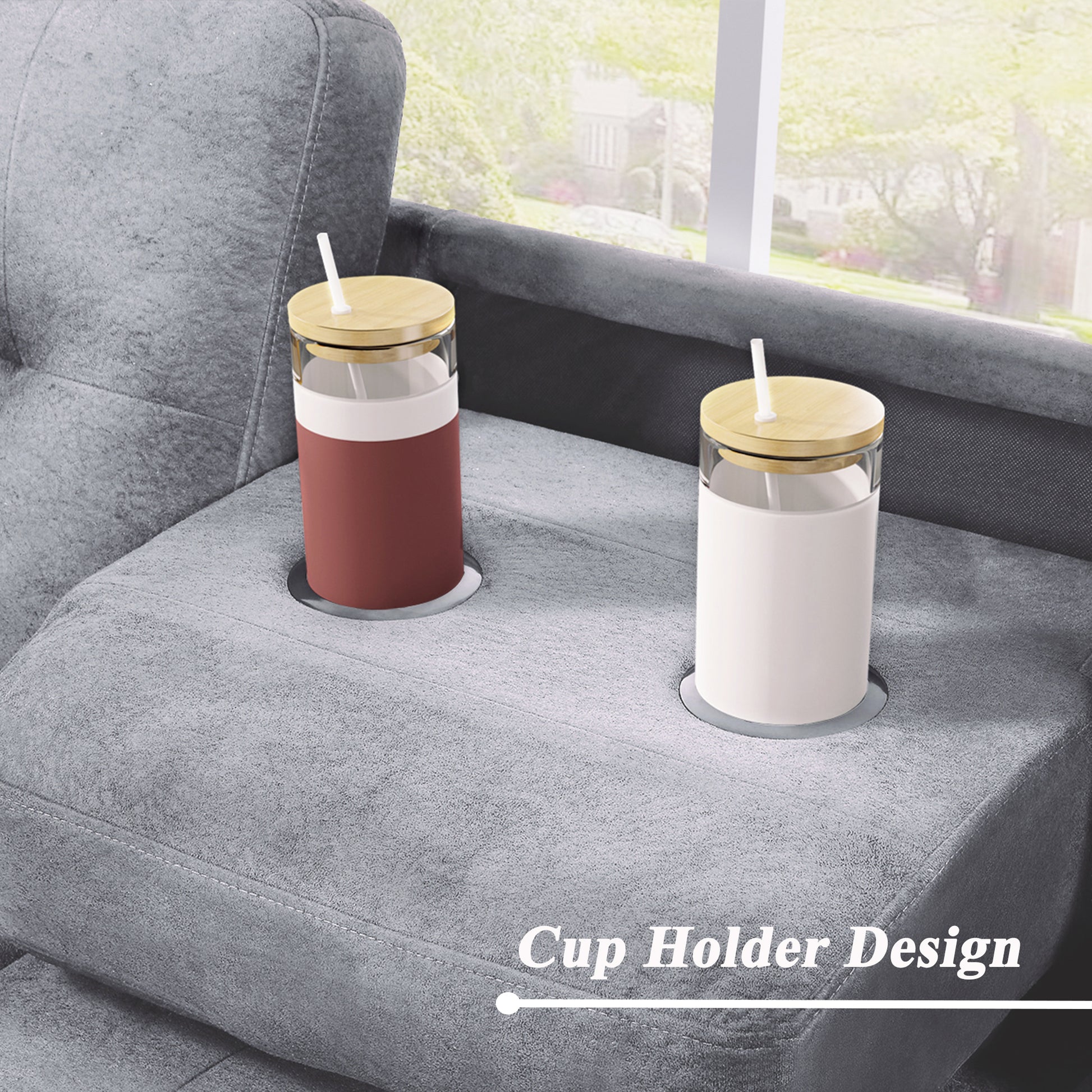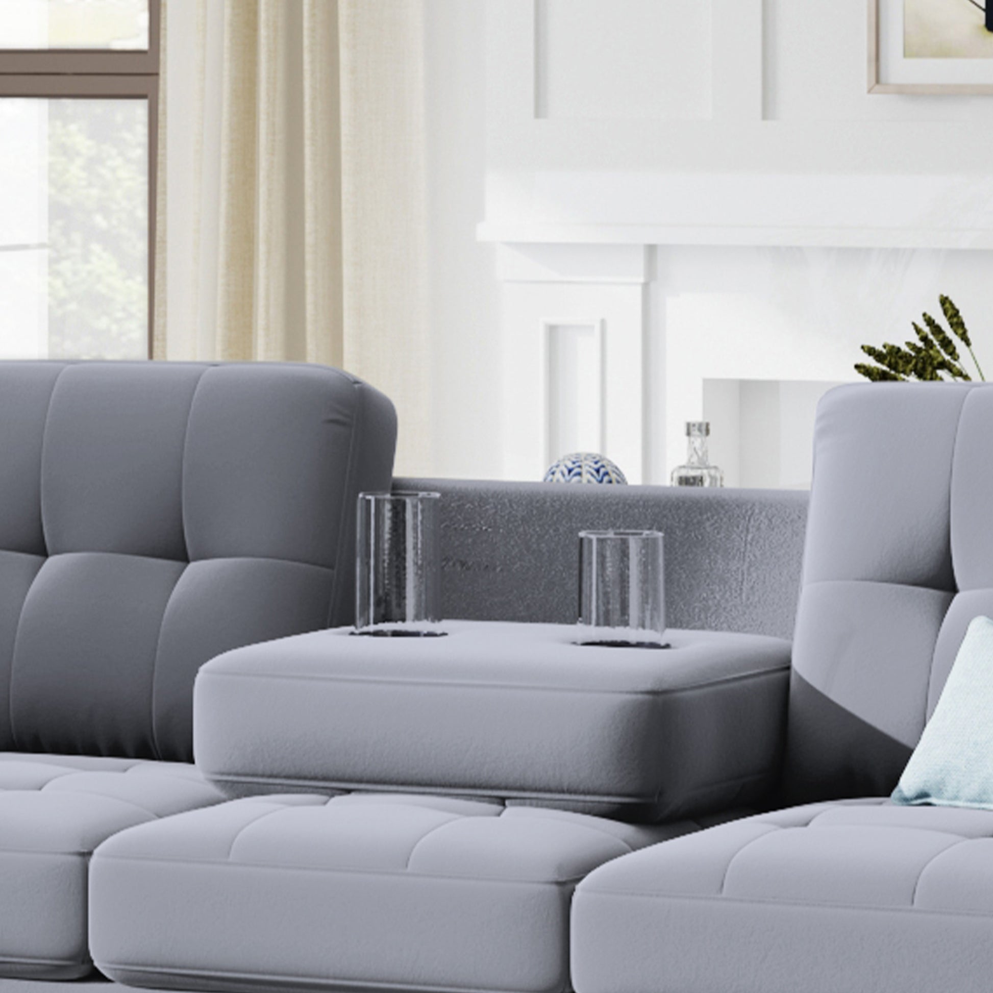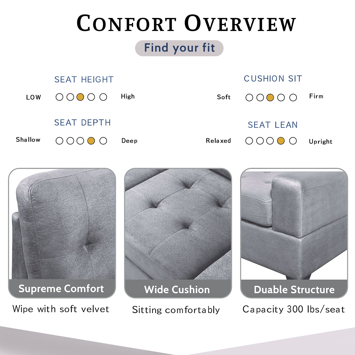 Orisfur. Sectional Sofa With Reversible Chaise Lounge, L Shaped Couch With Storage Ottoman And Cup Holders Antique Gray Foam Velvet