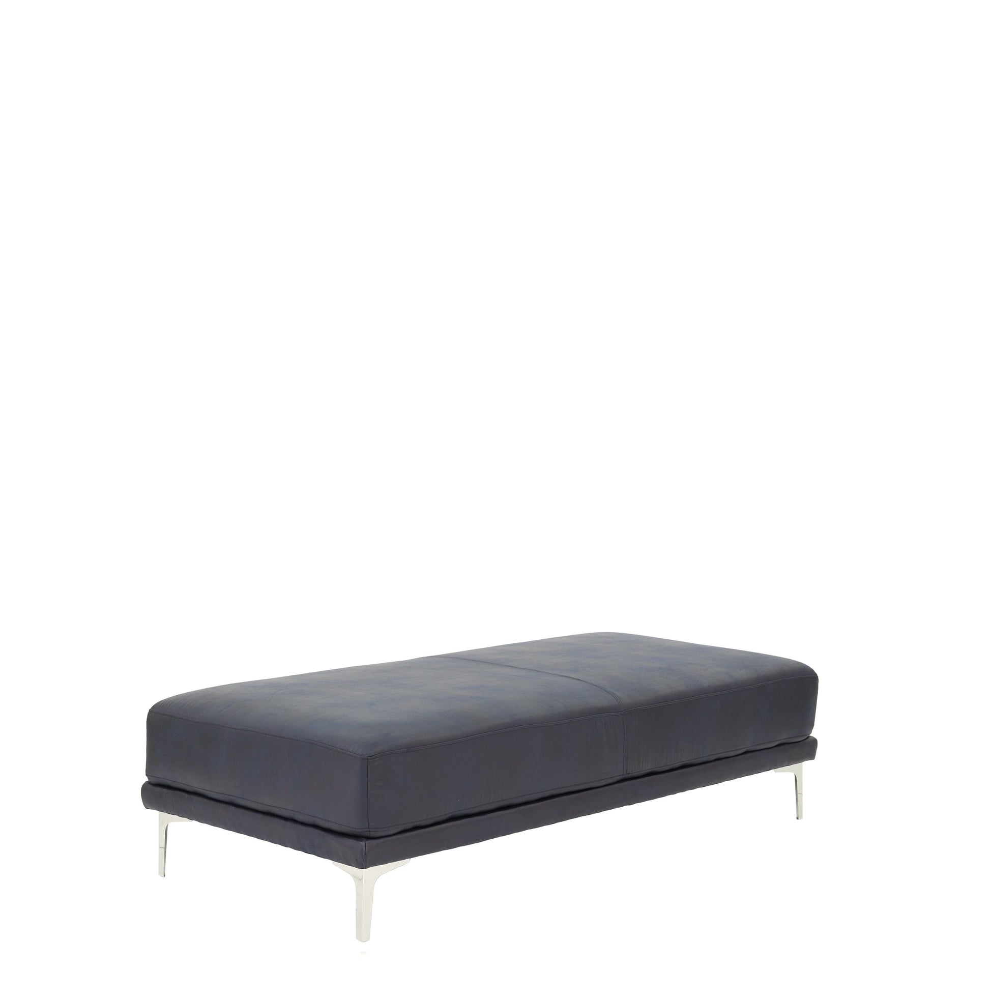 Ottoman In Black Faux Leather Dark Blue Faux Leather