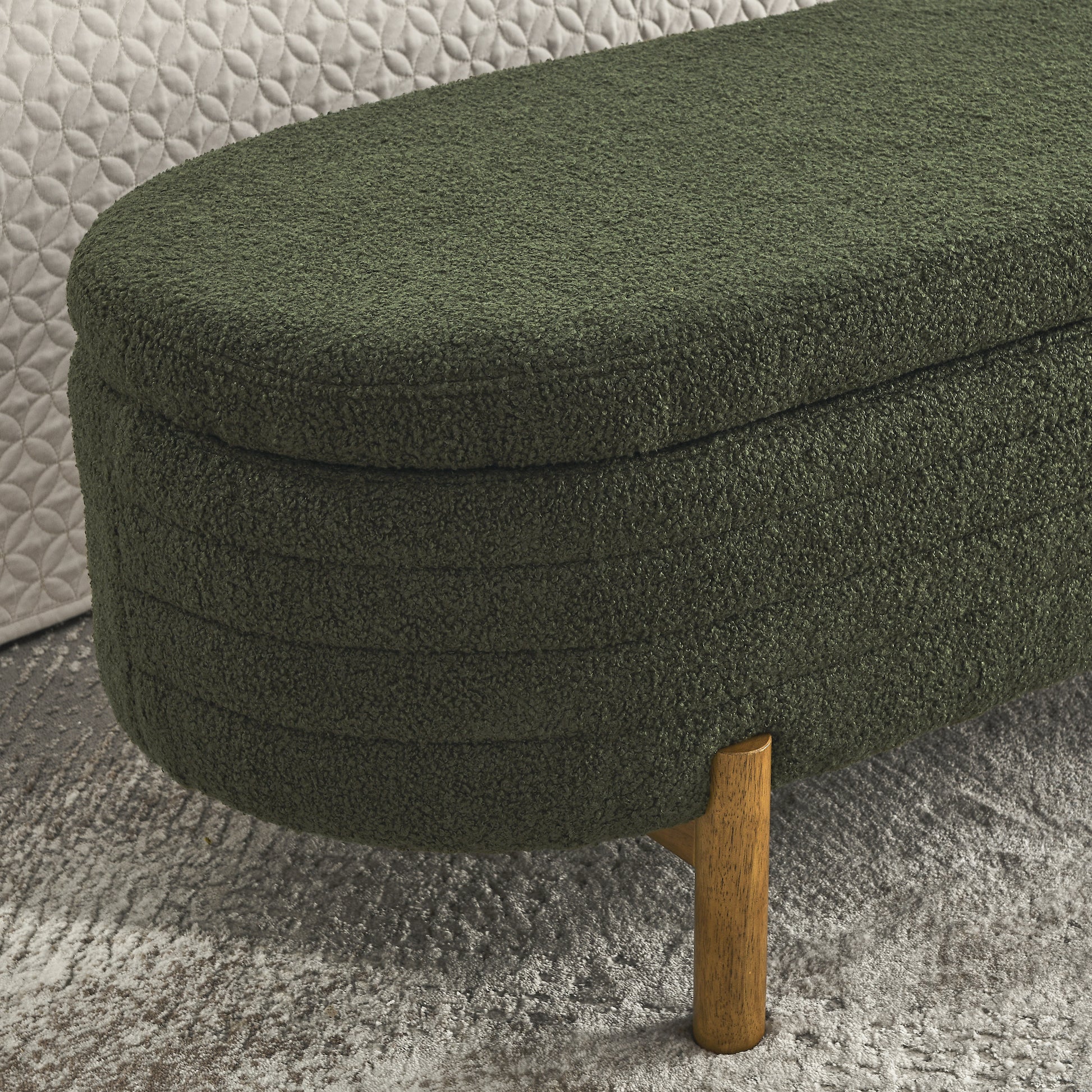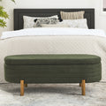 Ottoman Oval Storage Bench,Rubber Wood Leg, Green 46."X17.7"X10.8" Green Foam