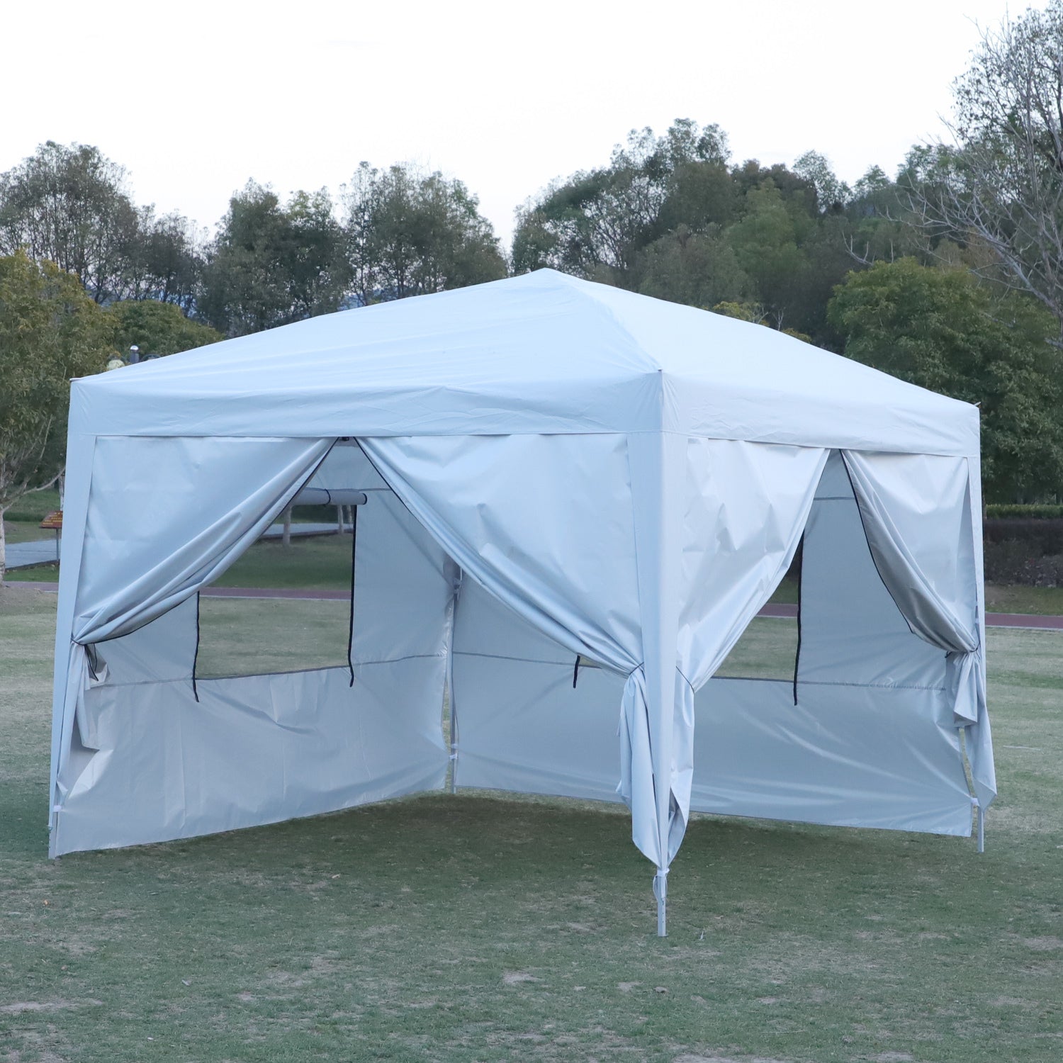 Outdoor 10X 10Ft Pop Up Gazebo Canopy Tent With Removable Sidewall With Zipper,2Pcs Sidewall With Mosquito Netting,With 4Pcs Weight Sand Bag,With Carry Bag White White Metal