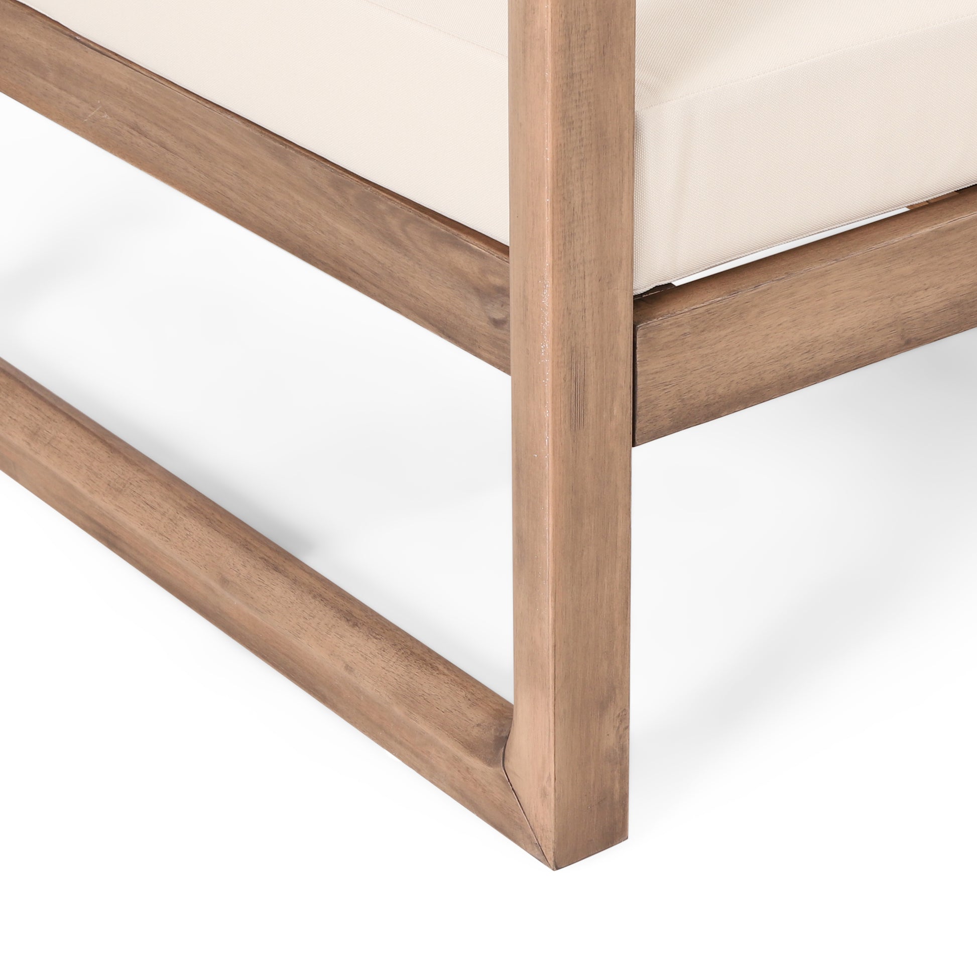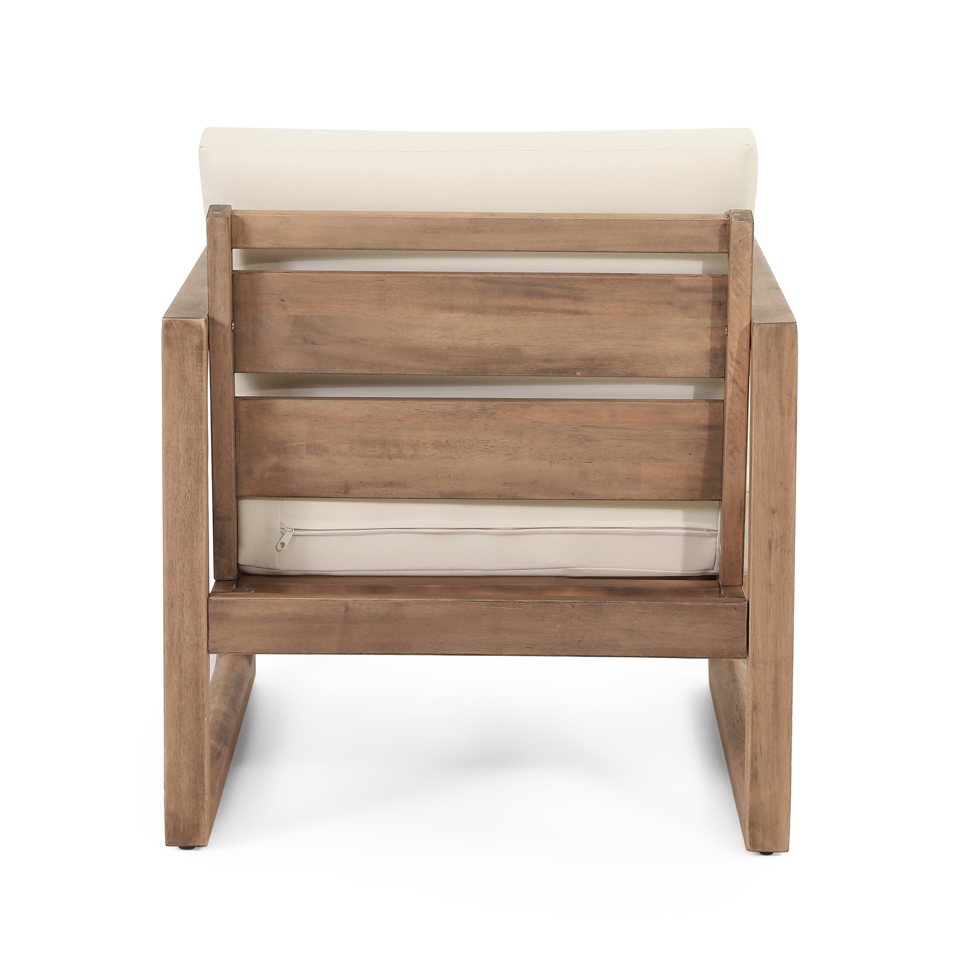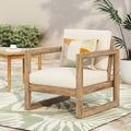 Outdoor Acacia Wood Club Chair With Cushions, Brown And Beige, 29.5'' D X 27.5'' W X 31.5'' H Brown Beige Acacia Wood