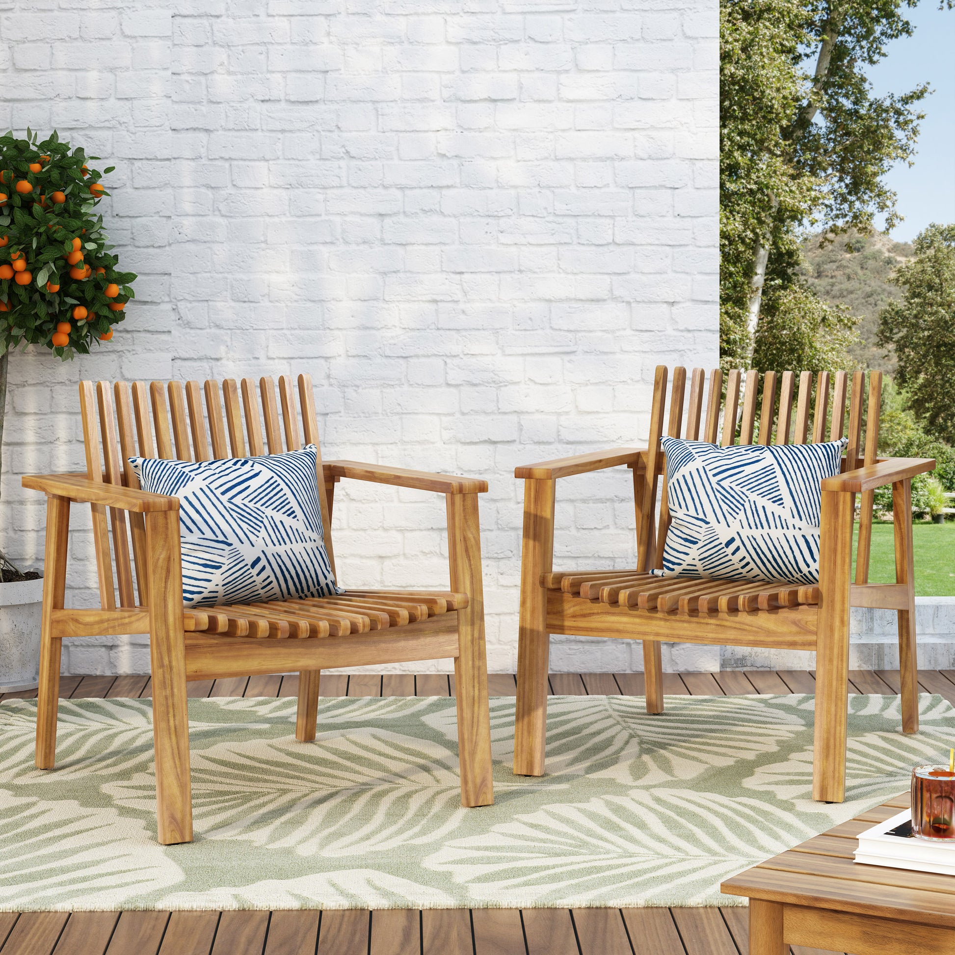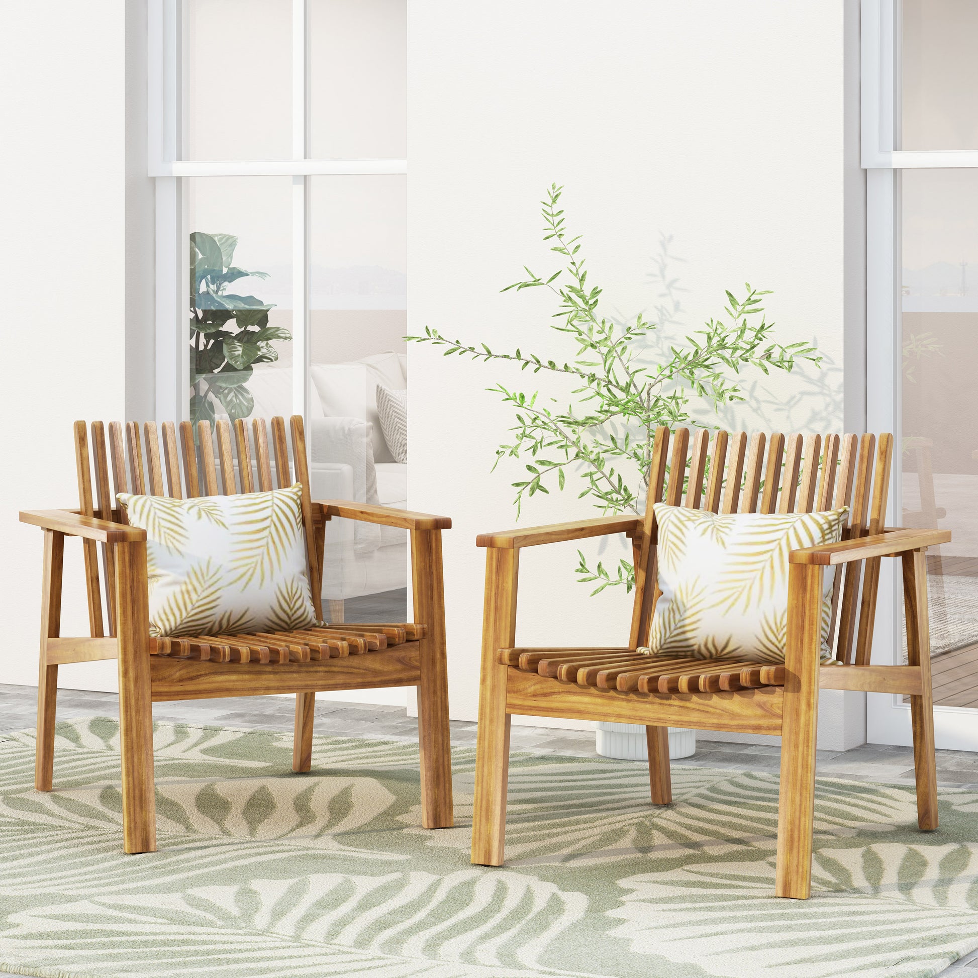 Outdoor Acacia Wood Slatted Club Chairs, Set Of 2, Teak Finish, Acacia Wood, 30"D X 28"W X 30.75"H Brown Acacia Wood