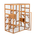 Outdoor Cat Enclosure, Large Wood Cat Cage With Sunlight Top Panel, Perches, Sleeping Boxes, Pet Playpen, Orange Orange Metal & Wood