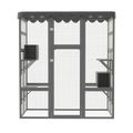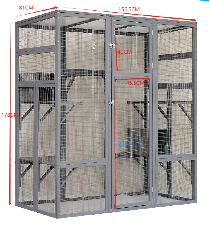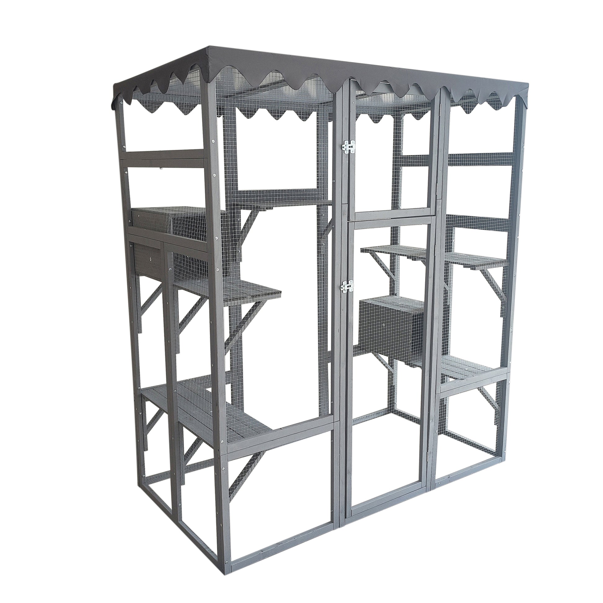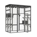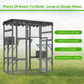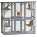 Outdoor Cat House Big Catio Wooden Feral Cat Shelter Enclosure With Large Spacious Interior, 6 High Ledges, Weather Protection Asphalt Roof Grey Wood