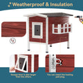 Outdoor Cat House, Large Feral Cats House With Escape Door,Wooden Outside Cat Shelter Weatherproof Red Solid Wood