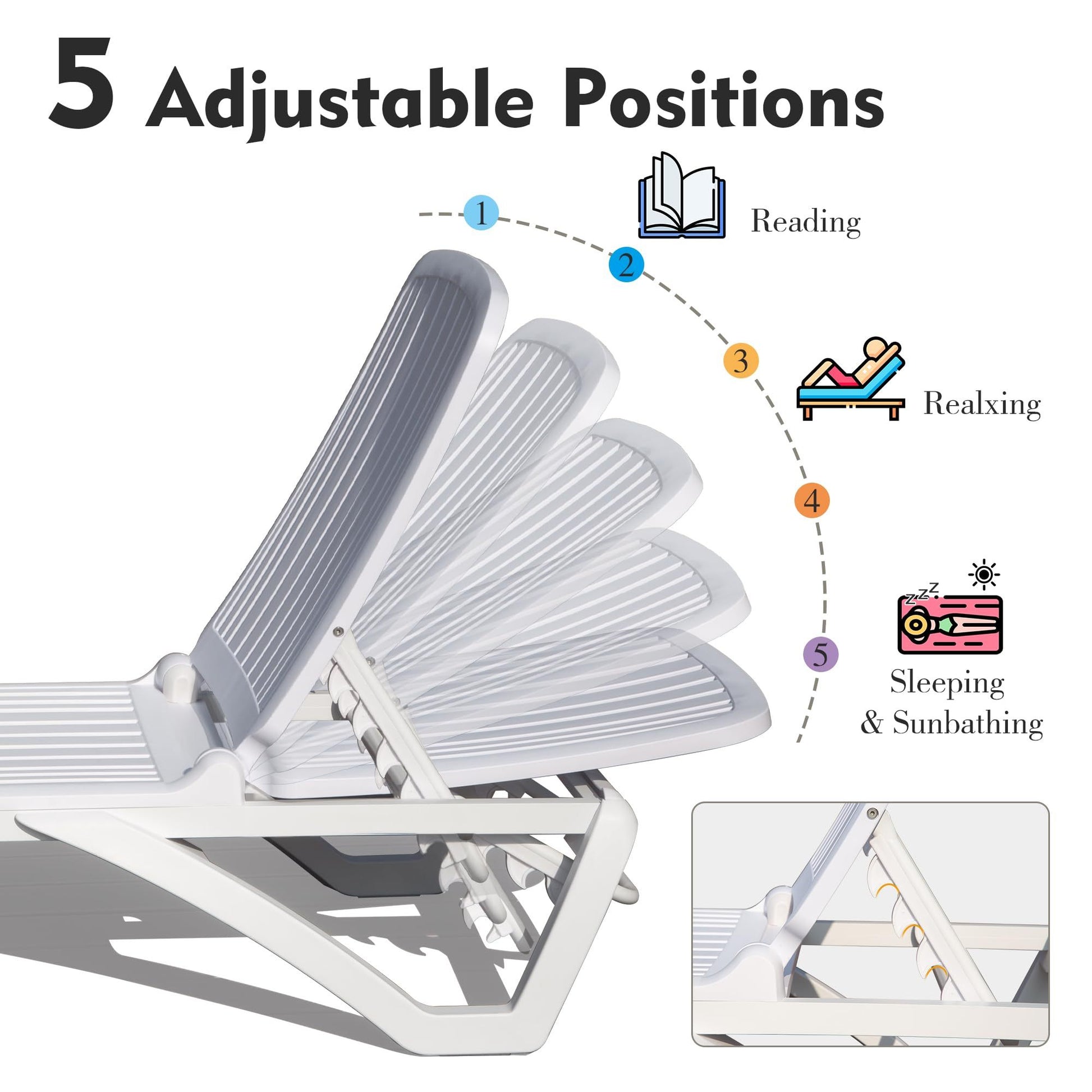 Outdoor Chaise Lounge, Pool Lounge Chair Plastic Adjustable Recliner In Pool Lounger Tanning Lounge Chair For In Pool, Beach, Poolside, Lawn, White White Plastic