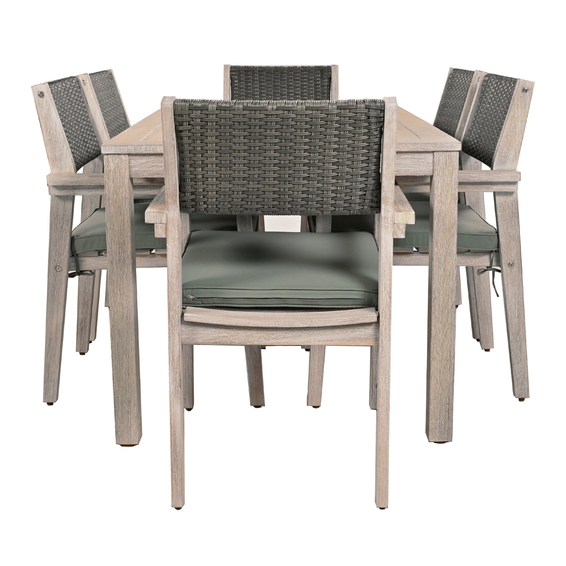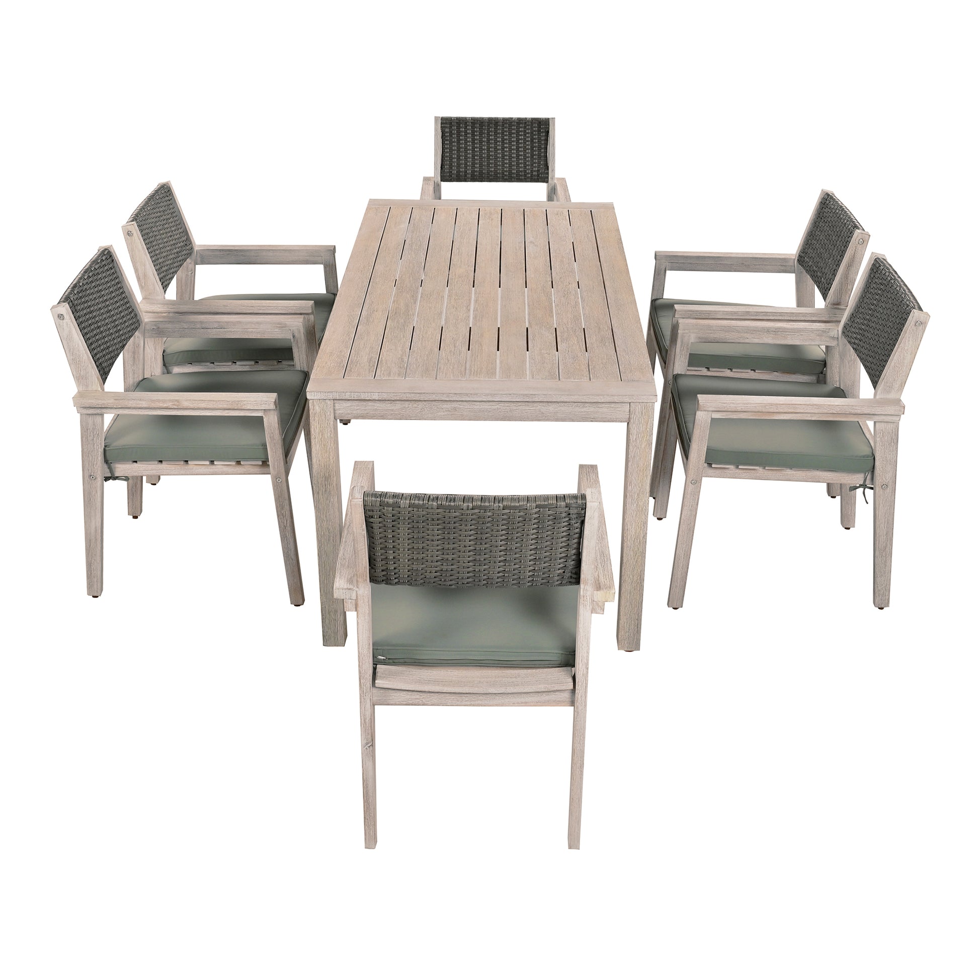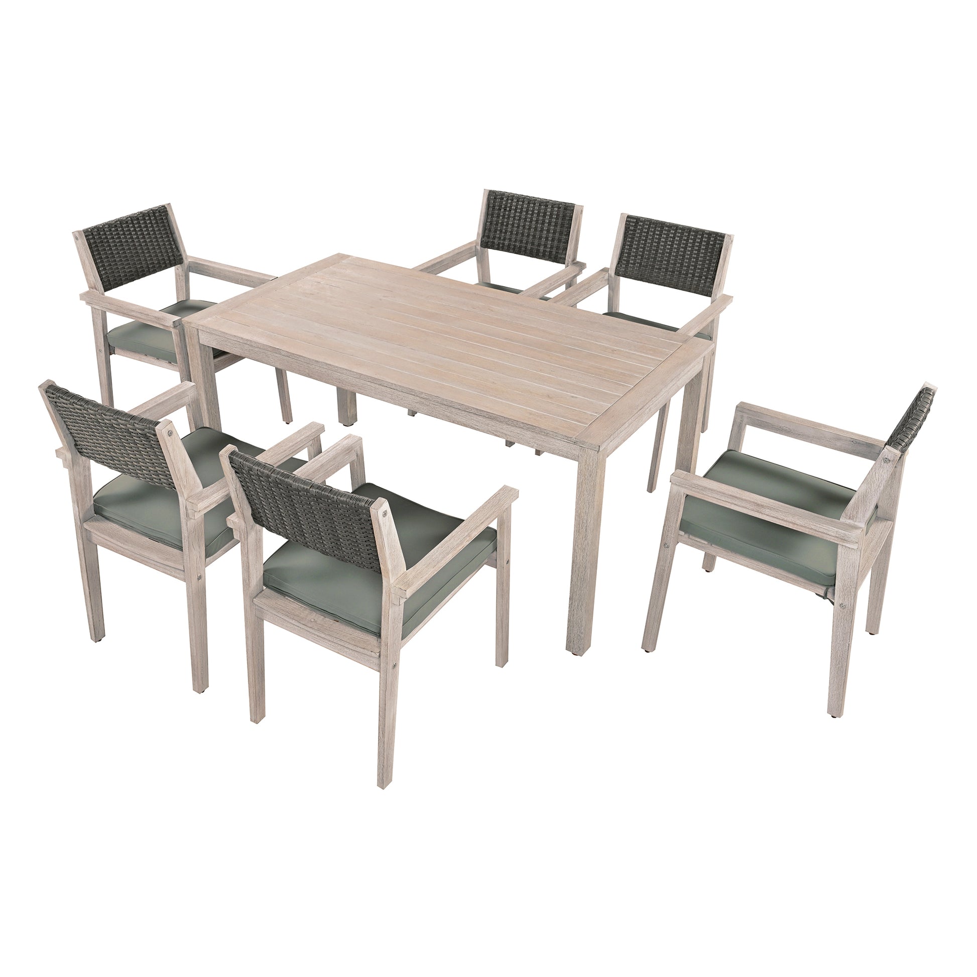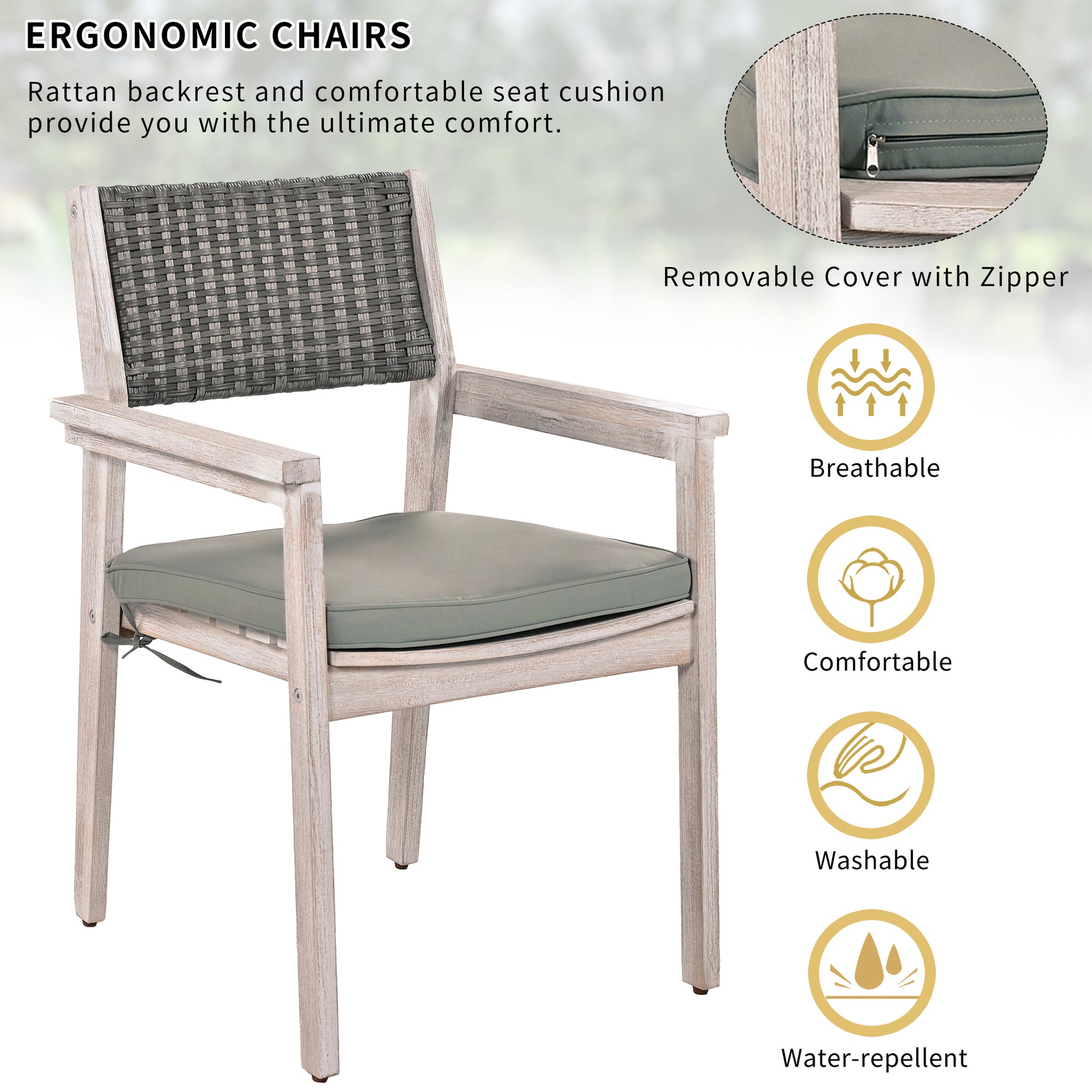 Outdoor Dining Set Patio Dining Table And Chairs With Rattan Backrest And Removable Cushions For Patio And Backyard, White Washed Yes White Washed Water Resistant Frame Water Resistant Cushion Garden & Outdoor Sectional Seating Groups Foam Acacia Wood