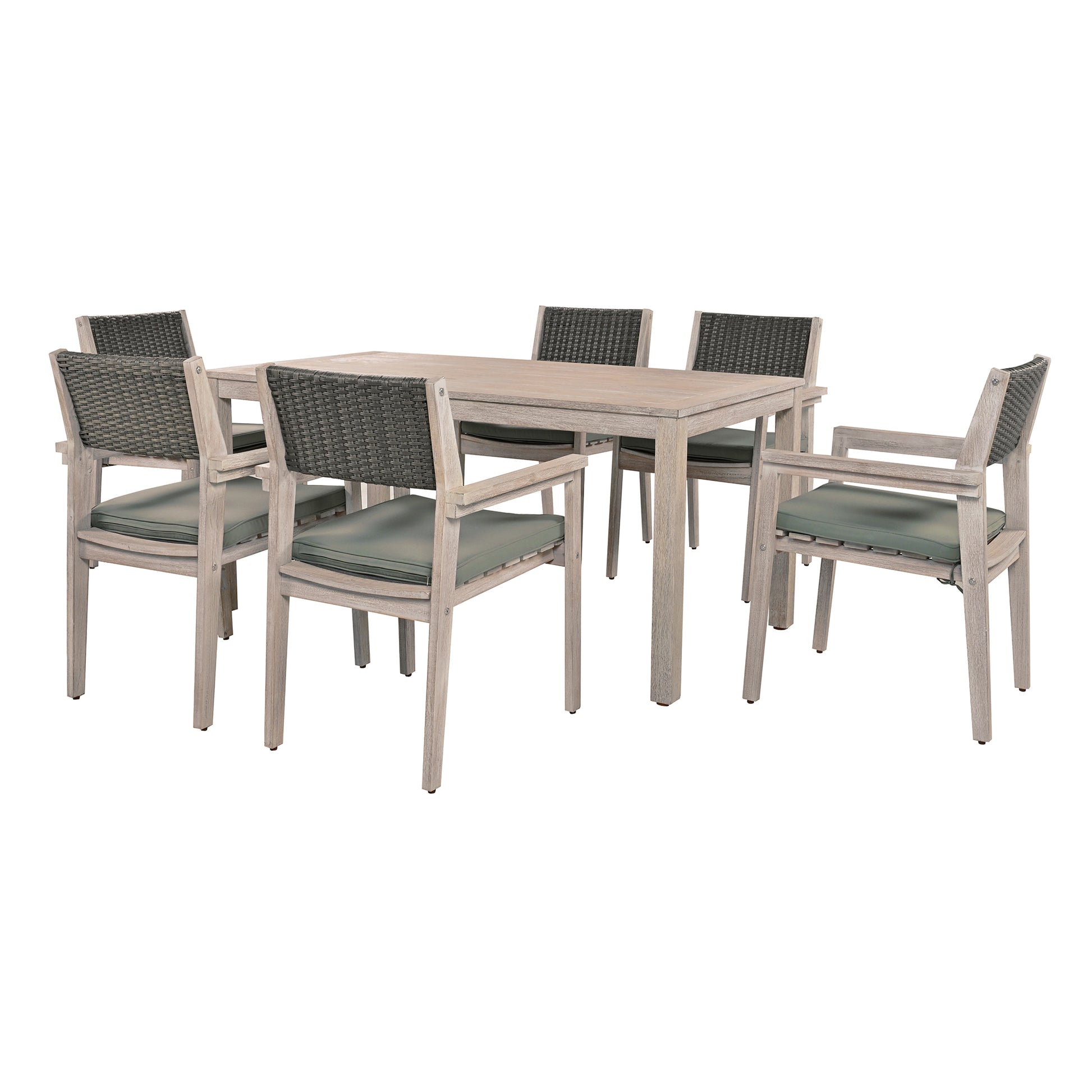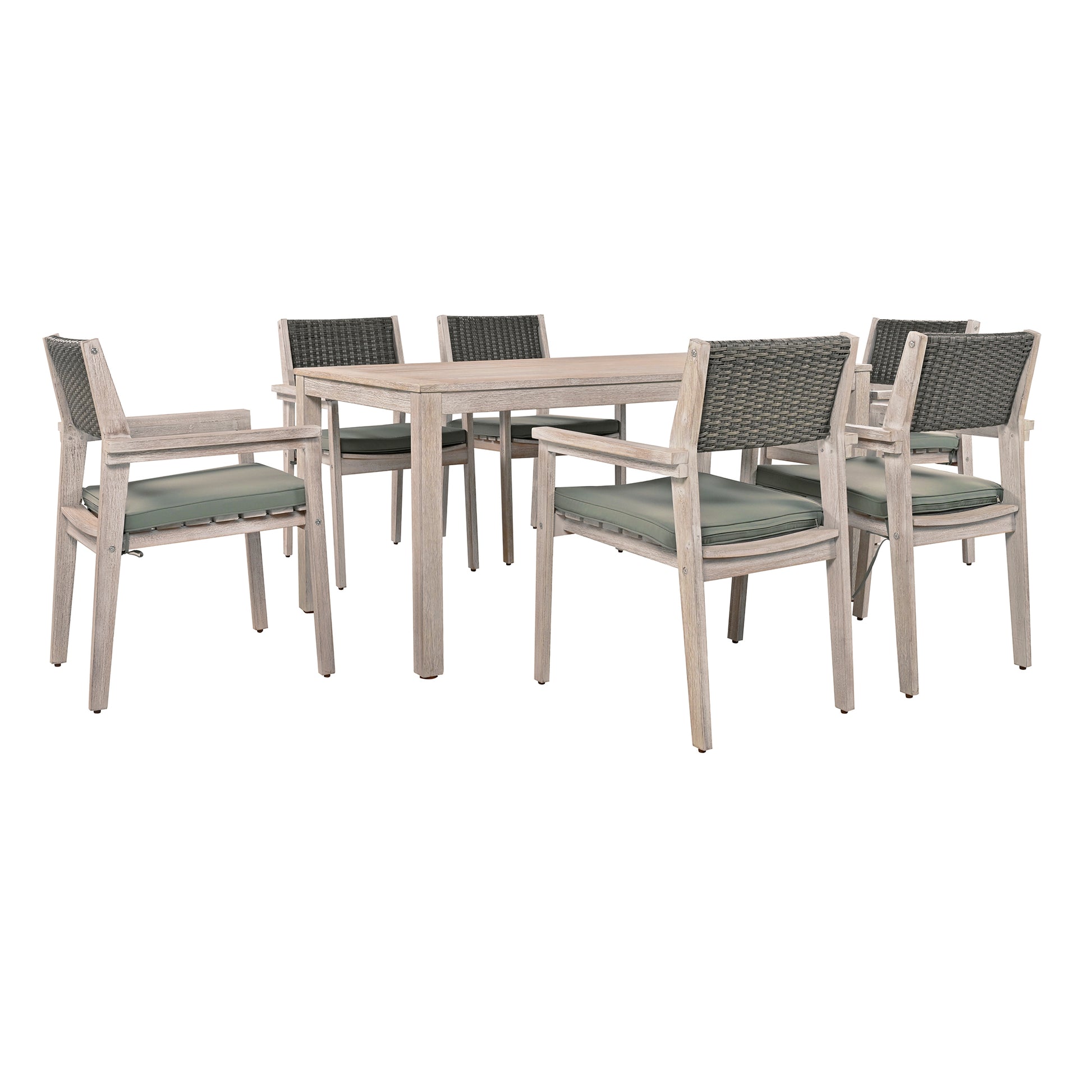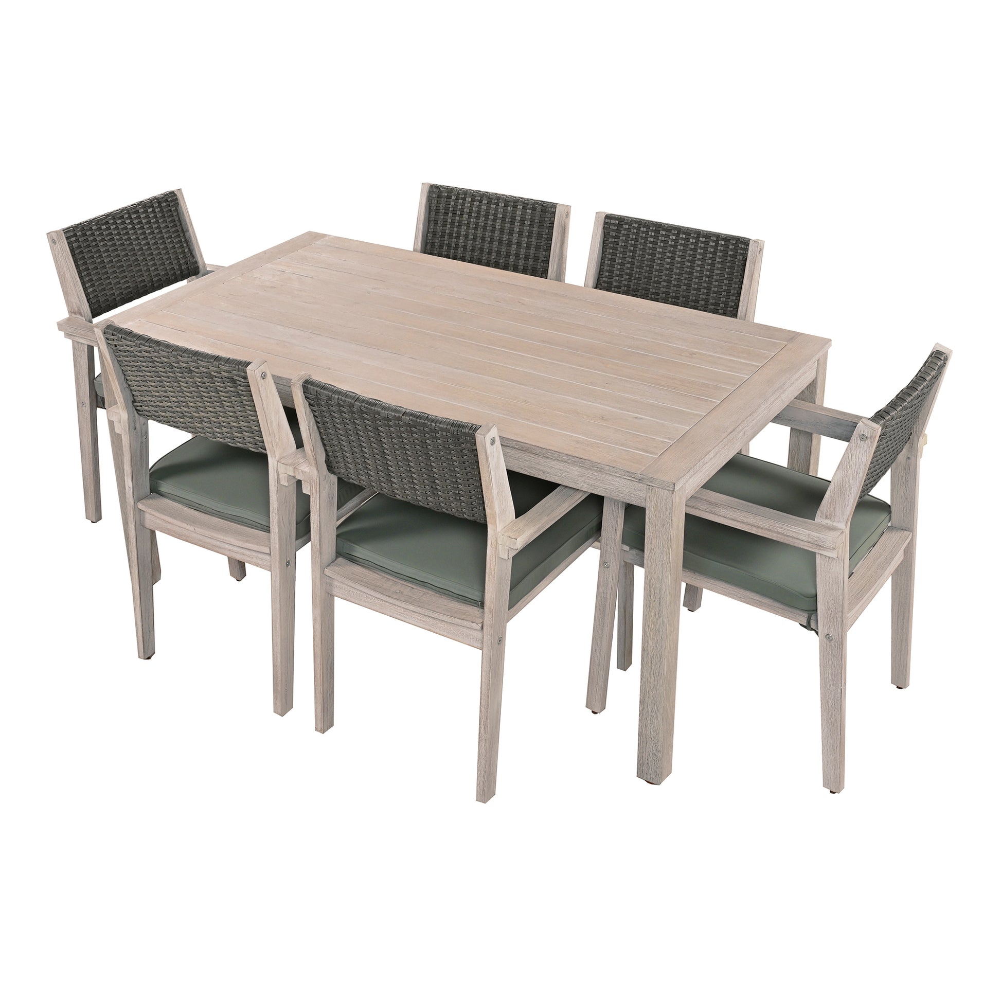 Outdoor Dining Set Patio Dining Table And Chairs With Rattan Backrest And Removable Cushions For Patio And Backyard, White Washed Yes White Washed Water Resistant Frame Water Resistant Cushion Garden & Outdoor Sectional Seating Groups Foam Acacia Wood