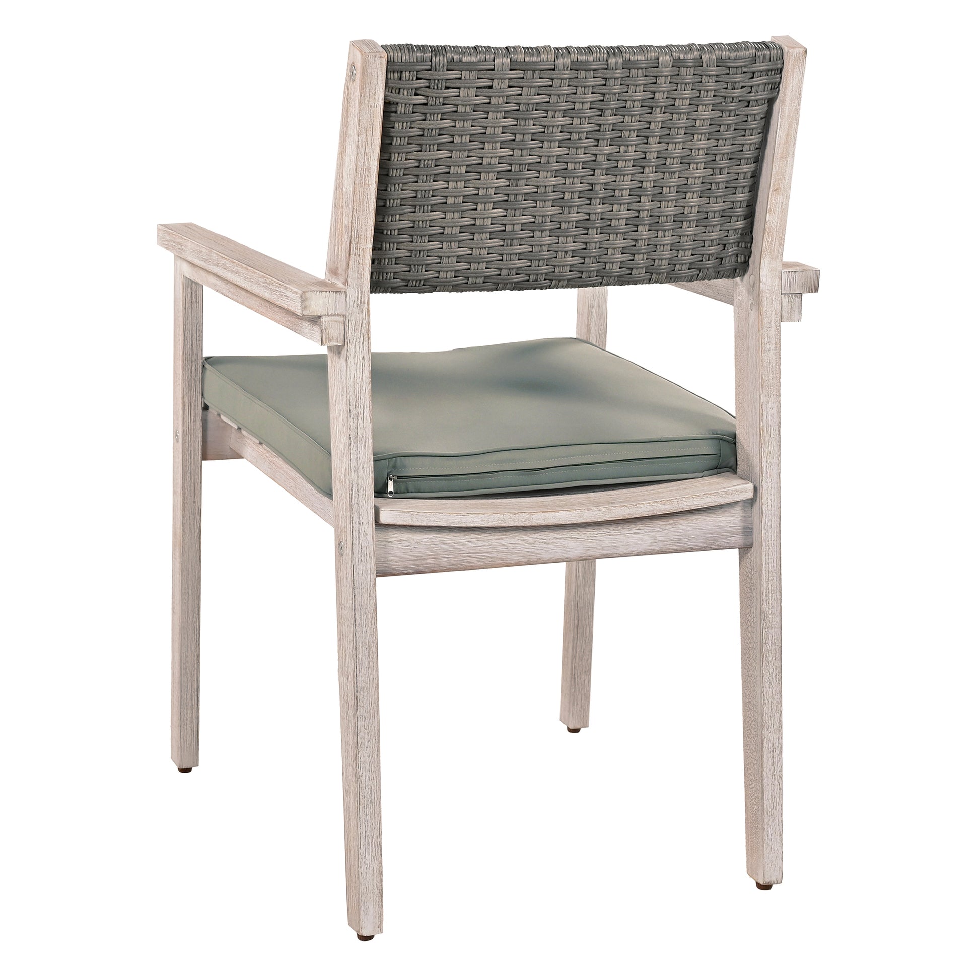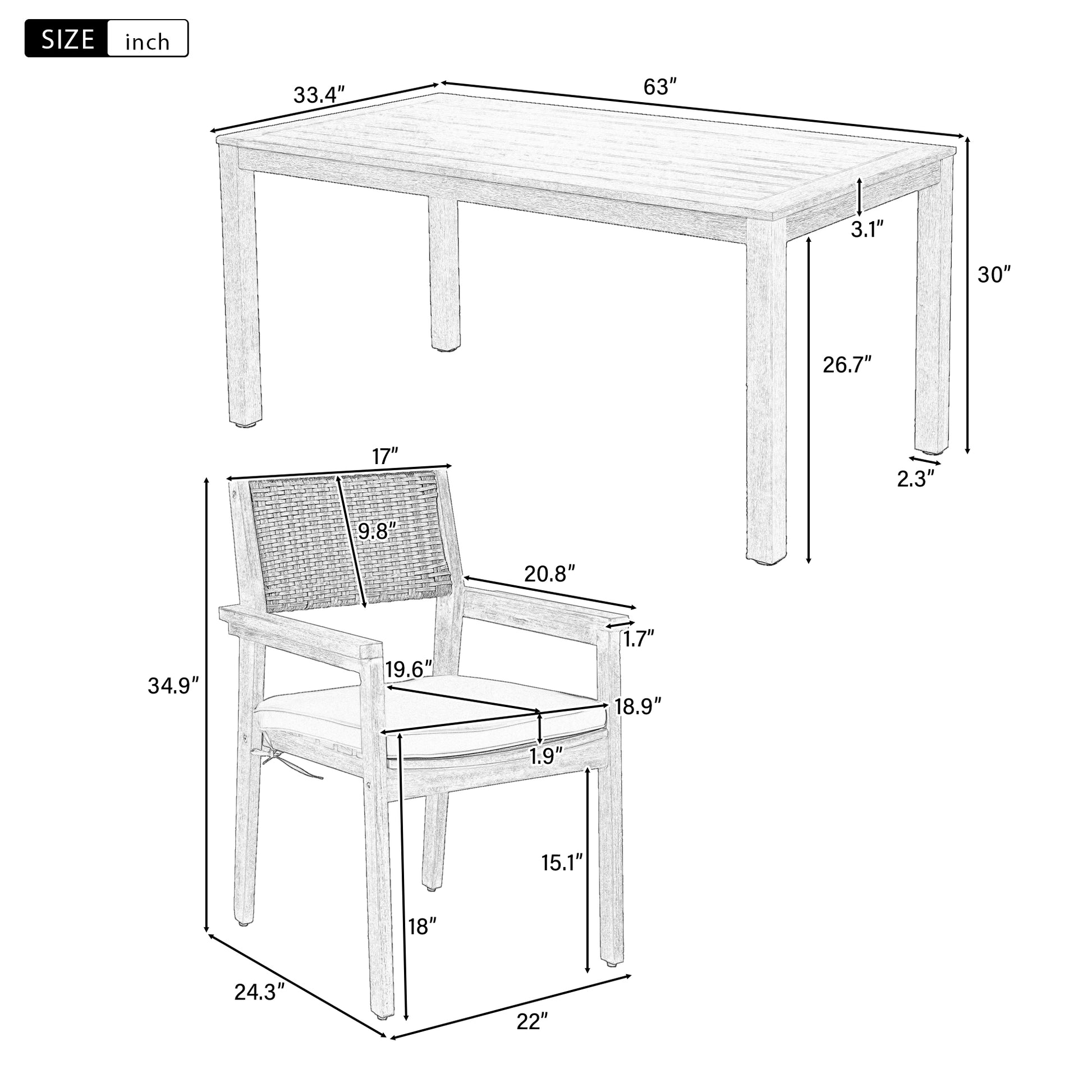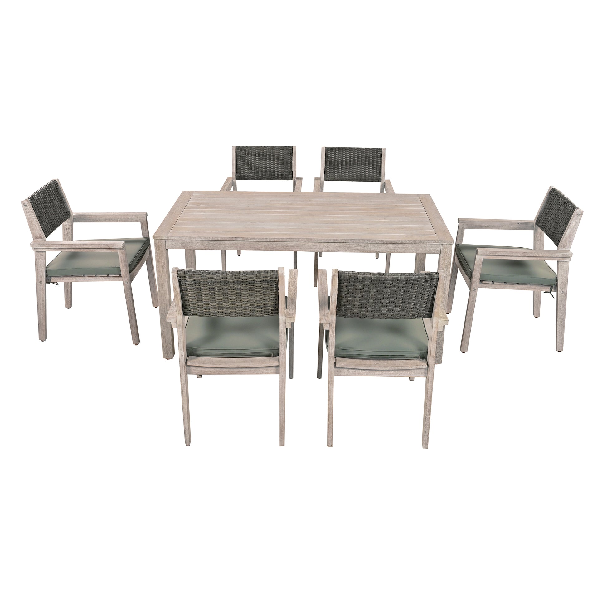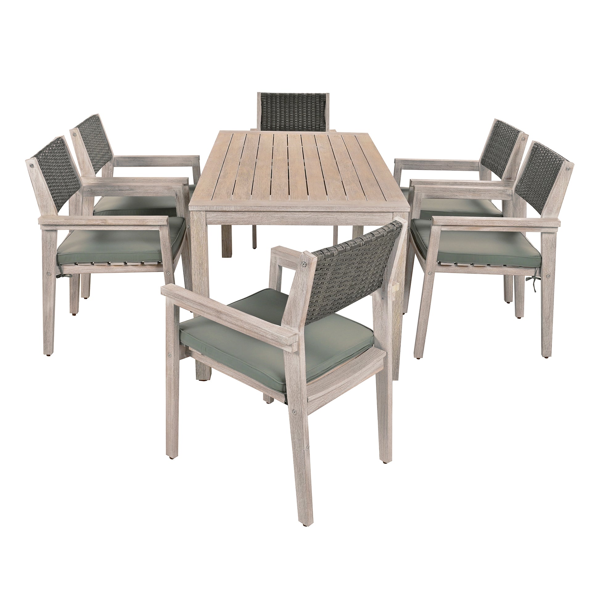 Outdoor Dining Set Patio Dining Table And Chairs With Rattan Backrest And Removable Cushions For Patio And Backyard, White Washed Yes White Washed Water Resistant Frame Water Resistant Cushion Garden & Outdoor Sectional Seating Groups Foam Acacia Wood