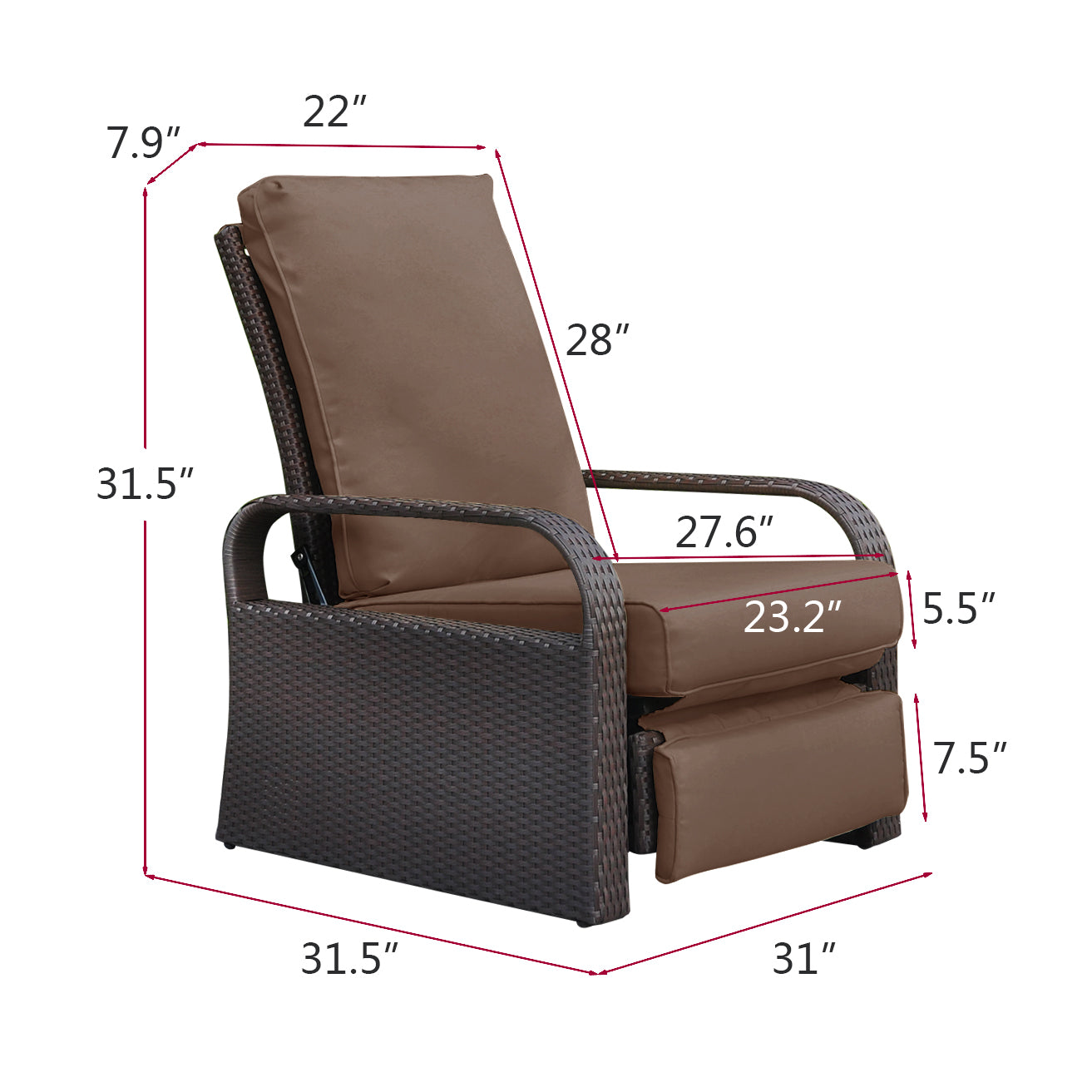 Outdoor Garden Recliner, Automatic Adjustable Wicker Lounge Recliner Chair With Comfy Thicken Cushion, All Weather Aluminum Frame, Brown Yes Lounge Brown Rust Resistant Frame Fade Resistant Cushion Garden & Outdoor Classic Complete Patio Sets Aluminium