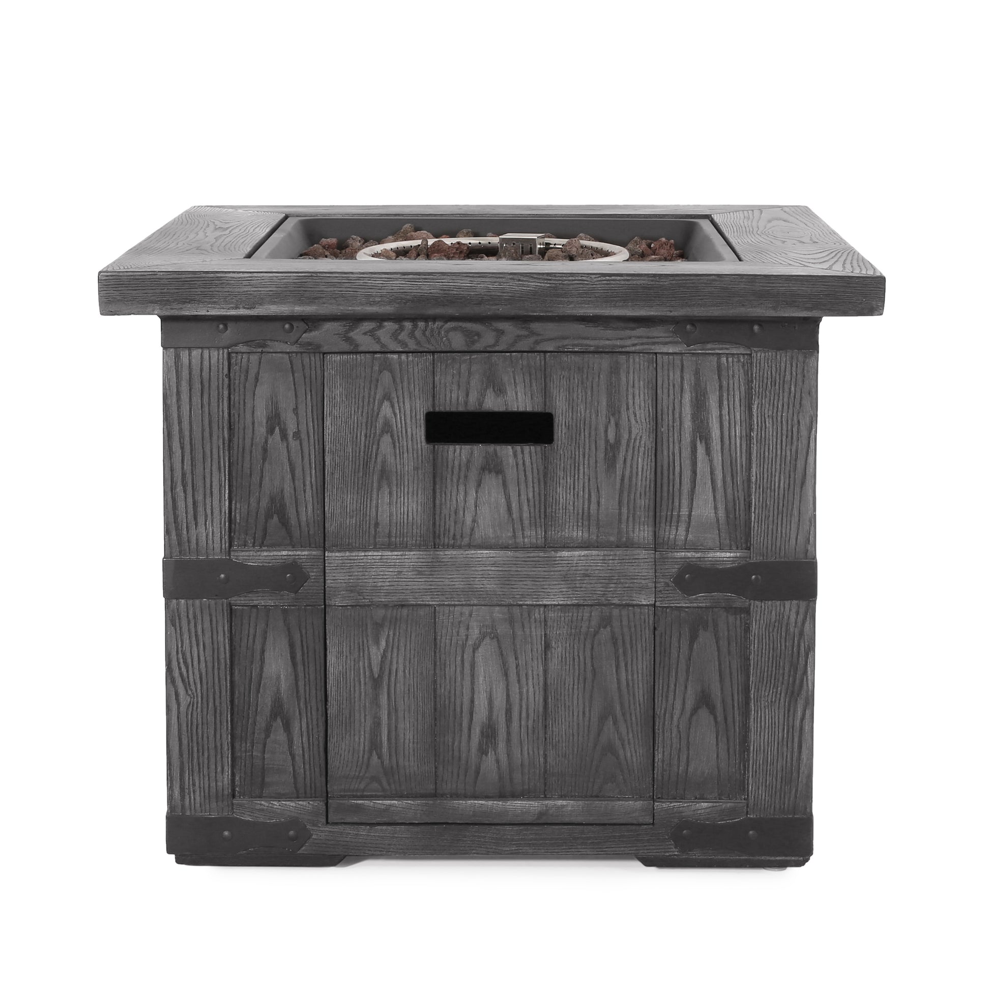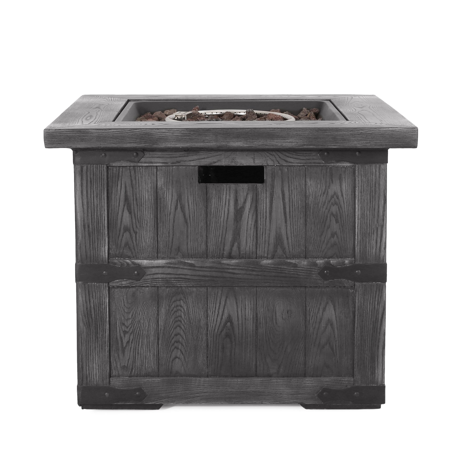 Outdoor Patio 24.5" H X 30" W Square Gas Burning Concrete Fire Pit 40, 000 Btu, Fire Pit Table With Tank Inside, Grey Grey Magnesium Oxide