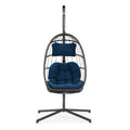Outdoor Patio Wicker Hanging Chair Swing Chair Patio Egg Chair Uv Resistant Dark Blue Cushion Aluminum Frame Dark Grey Aluminum