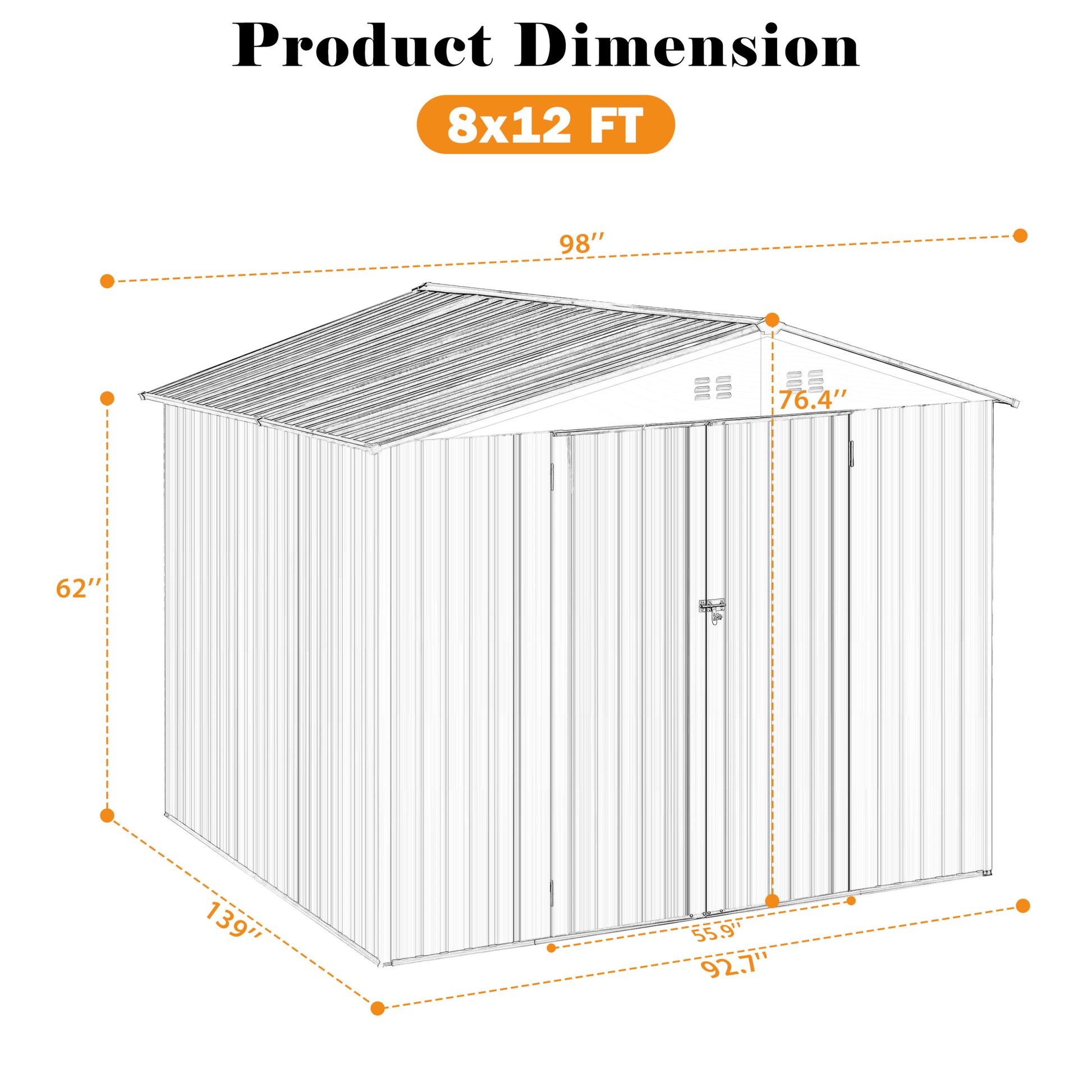 Outdoor Sheds 8Ft X 12Ft & Outdoor Storage Clearance, Metal Anti Corrosion Utility Tool House With Lockable Door & Shutter Vents, Waterproof Storage Garden Shed For Backyard Lawn Patio Grey Iron