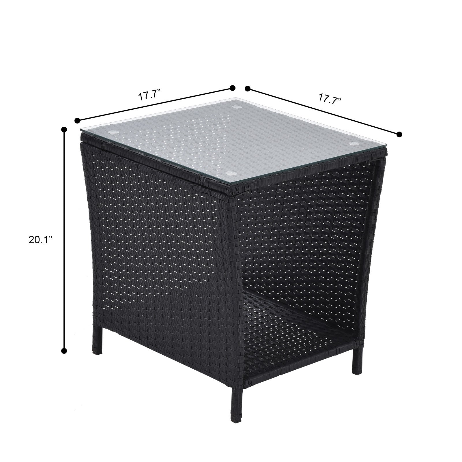 Outdoor Side Coffee Table With Storage Shelf,All Weather Pe Rattan And Steel Frame,Patio Furniture Square,Bistro Table For Garden Porch,Backyard Pool Indoor Black Black Weather Resistant Frame Garden & Outdoor Rattan Metal