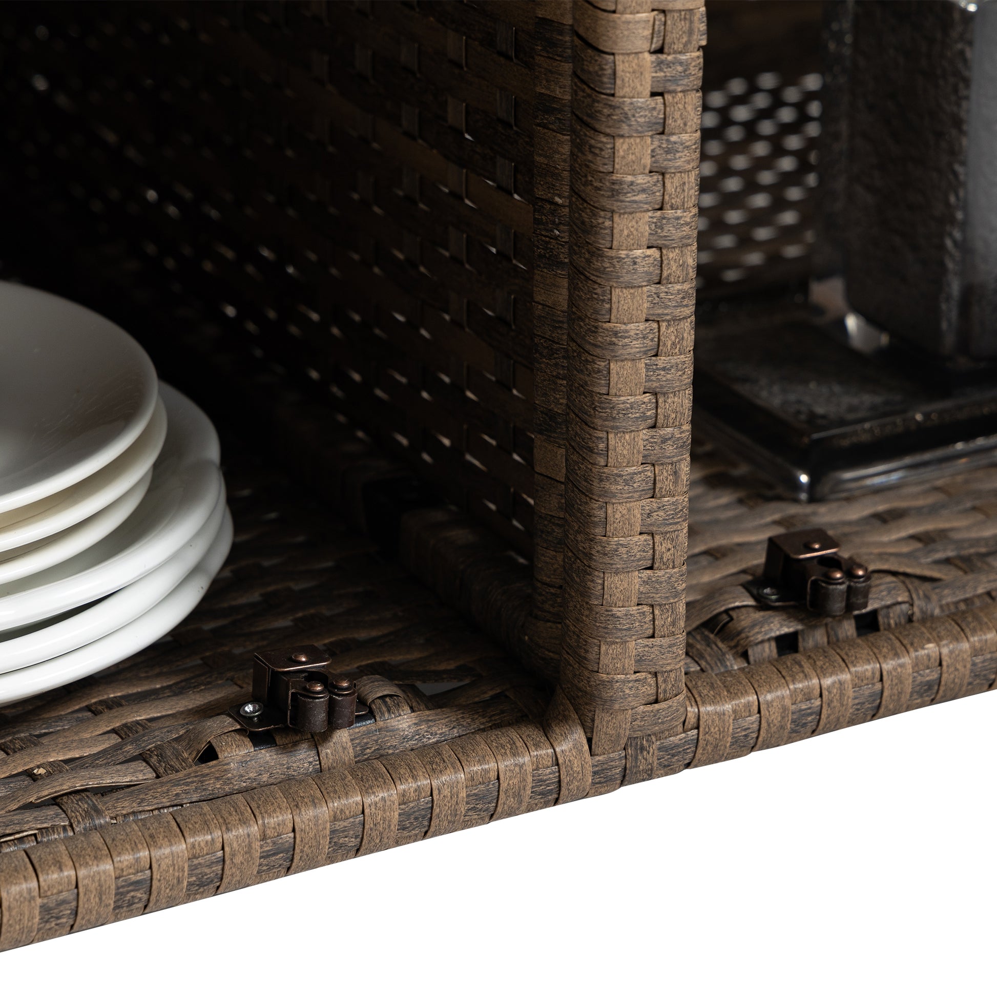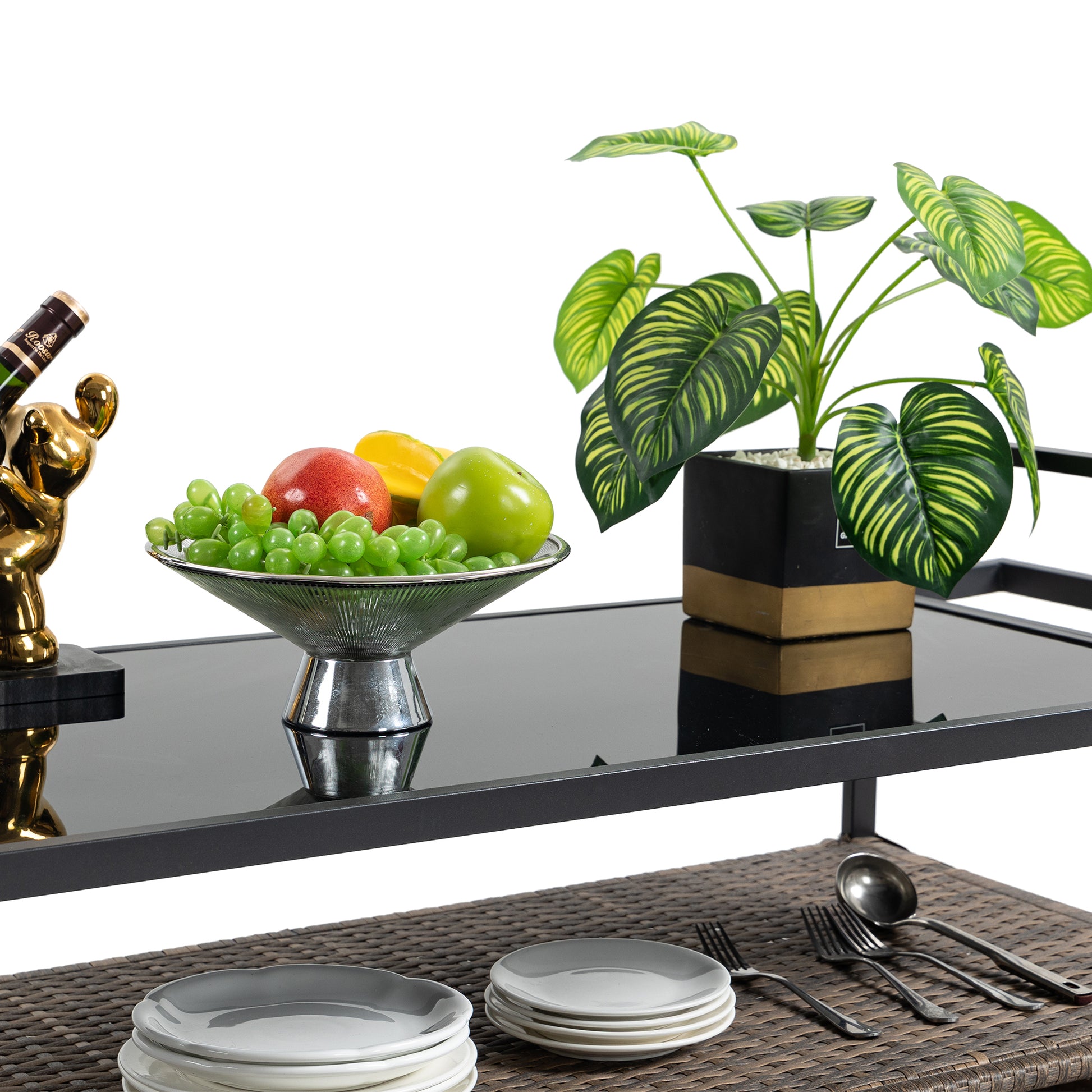 Outdoor Wicker Bar Cart, Patio Wine Serving Cart W Wheelsrolling Rattan Beverage Bar Counter Table W Glass Top For Porch Backyard Garden Poolside Party, Light Brown Light Brown Garden & Outdoor