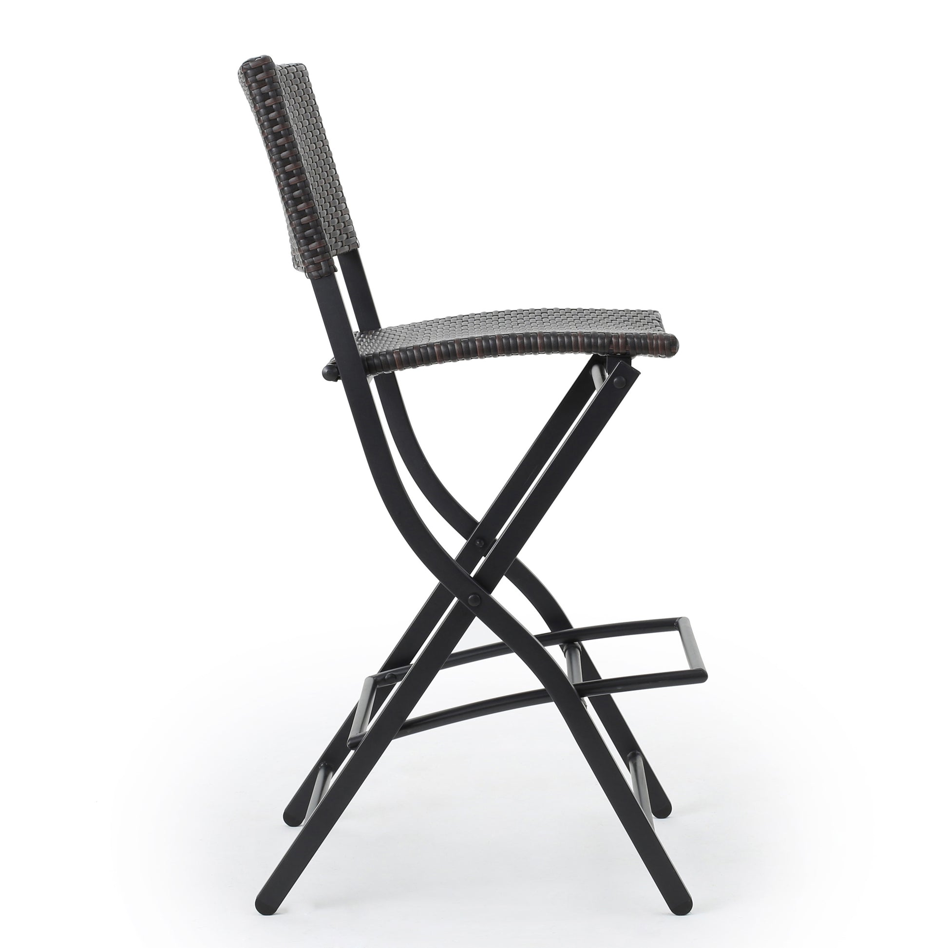 Outdoor Wicker Barstools Faux Rattan Patio Bar Stool Foldable Chair, 2 Pcs Set, Multibrown Brown Multi Garden & Outdoor American Design,Antique,Classic Pe Rattan Iron