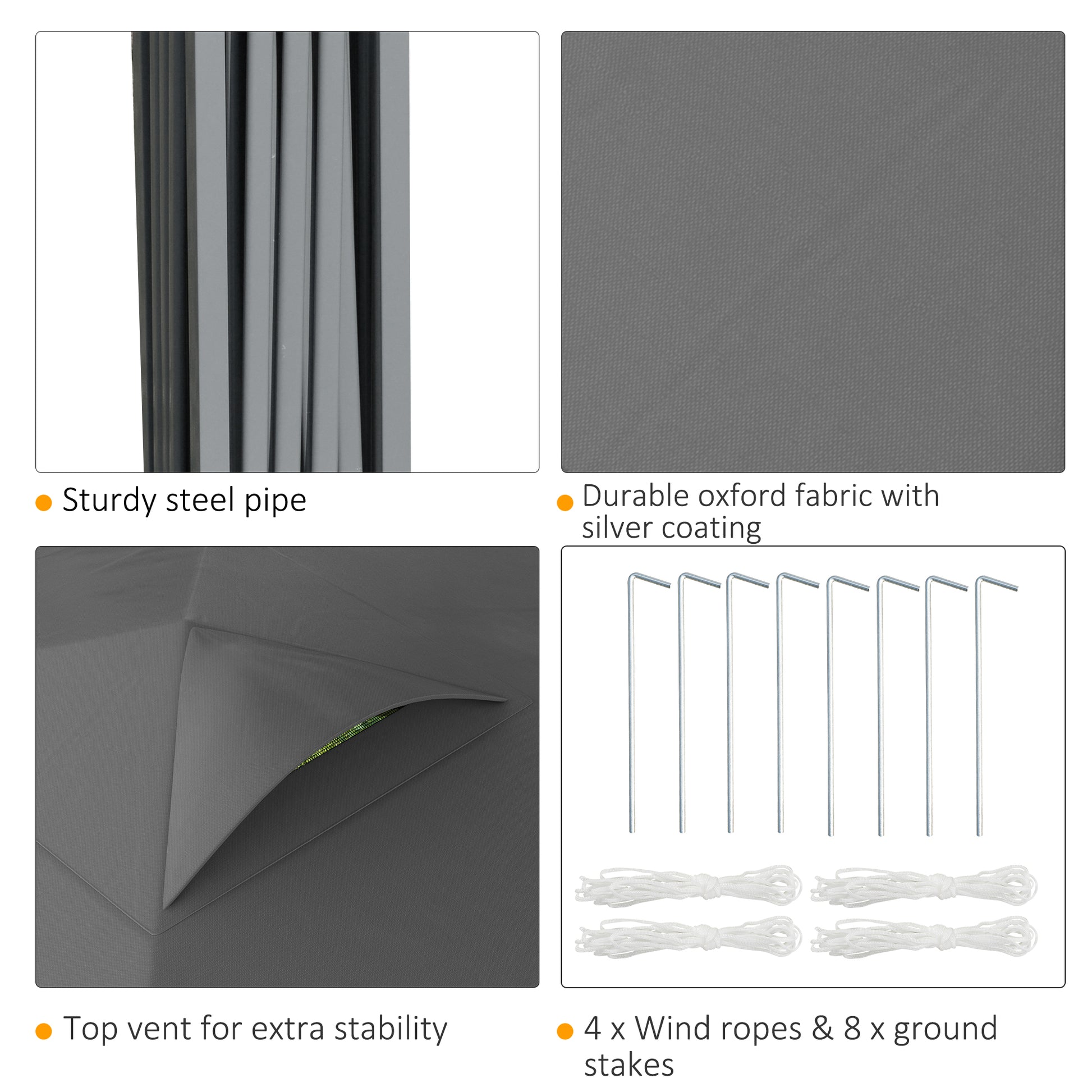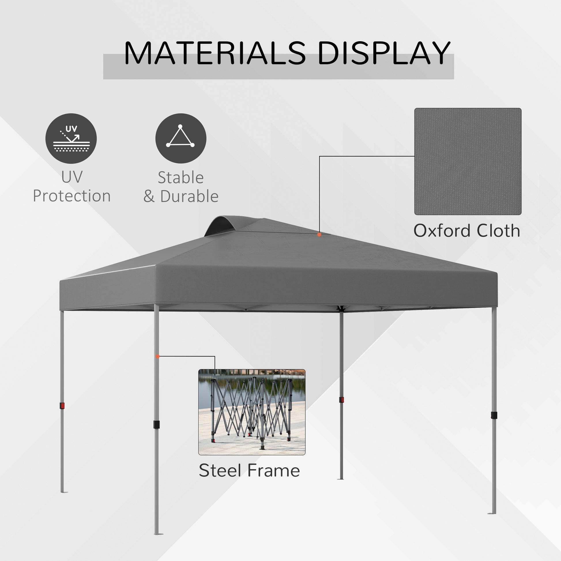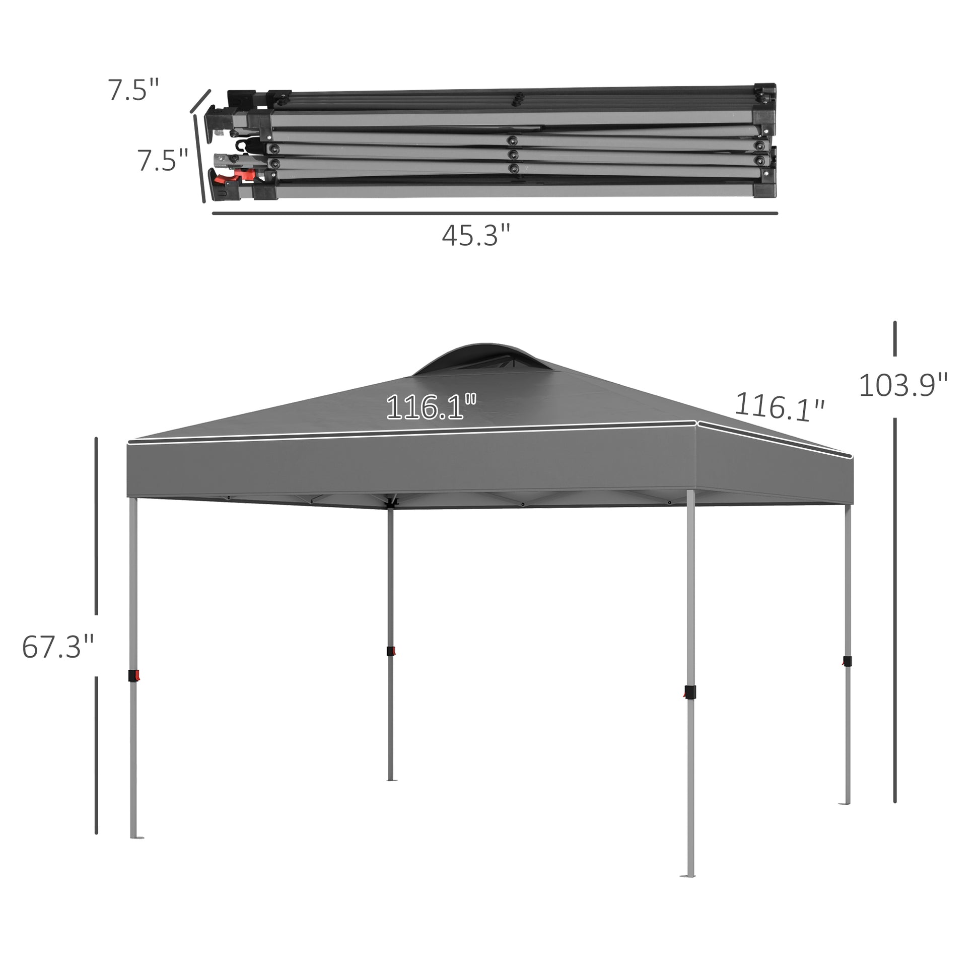 Outsunny 10' X 10' Pop Up Canopy Tent, Instant Sun Shelter With 3 Level Adjustable Height, Top Vents And Wheeled Carry Bag For Outdoor, Garden, Patio, Dark Gray Dark Grey Steel