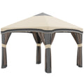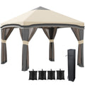 Outsunny 10' X 10' Pop Up Canopy Tent With Netting, Instant Tents For Parties, Height Adjustable, With Wheeled Carry Bag And 4 Sand Bags For Outdoor, Garden, Patio, Beige Beige Steel