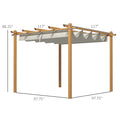 Outsunny 10' X 10' Retractable Pergola Canopy, Wood Grain Aluminum Pergola, Outdoor Sun Shade Shelter For Grill, Garden, Patio, Backyard, Deck, Cream White White Aluminum