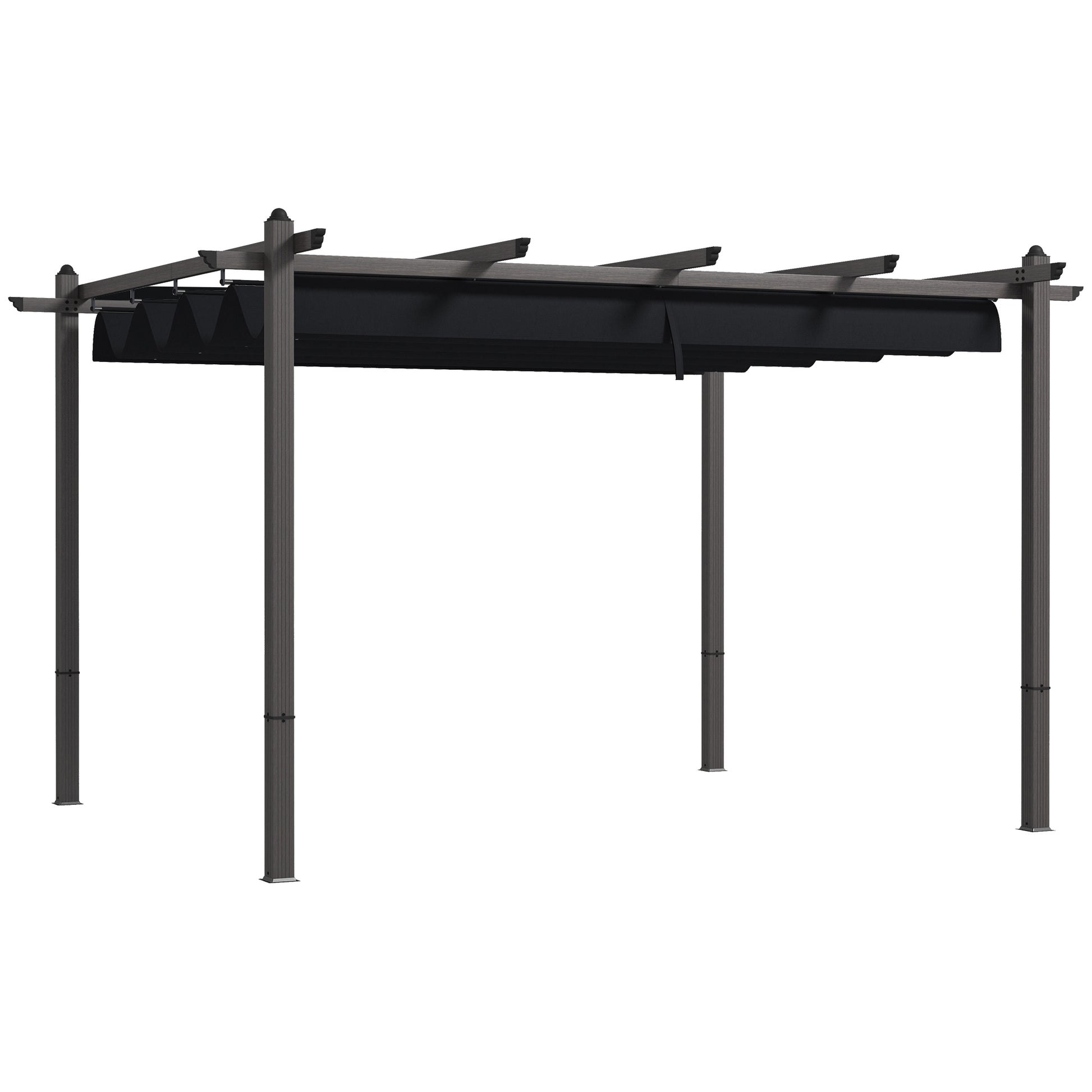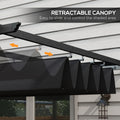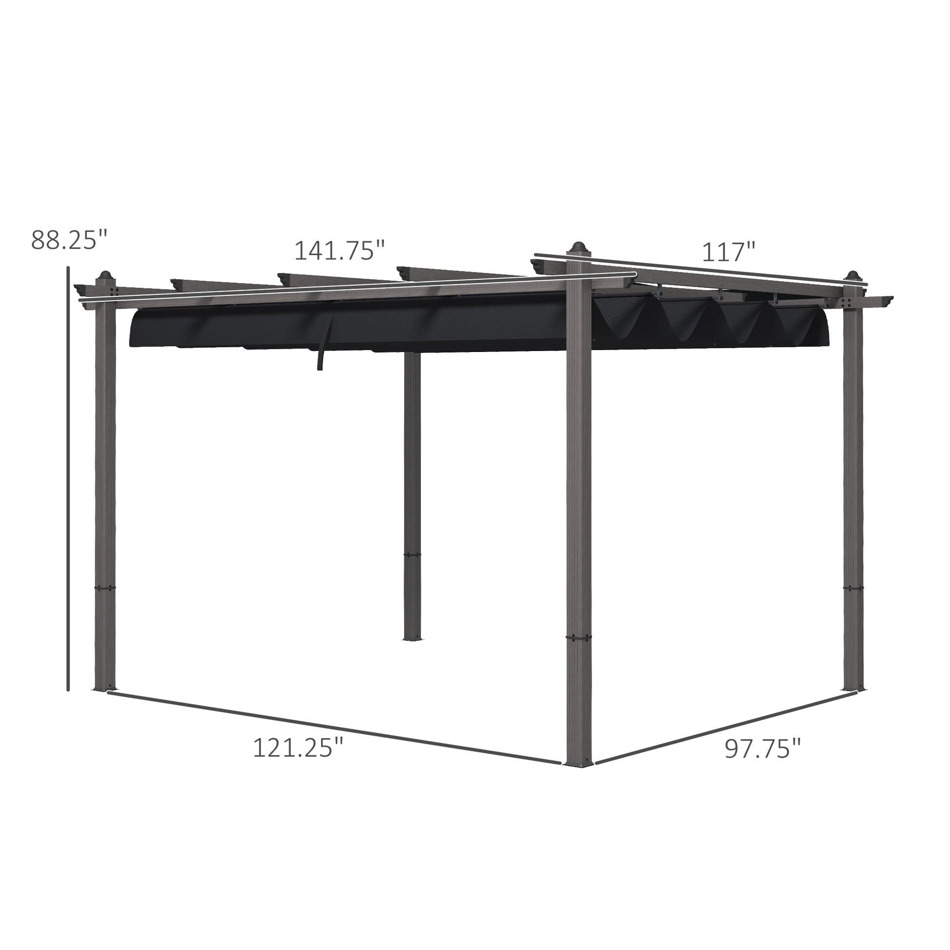 Outsunny 10' X 12' Retractable Pergola Canopy, Wood Grain Aluminum Pergola, Outdoor Sun Shade Shelter For Grill, Garden, Patio, Backyard, Deck, Gray Gray Aluminum