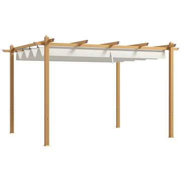 Outsunny 10' X 12' Retractable Pergola Canopy, Wood Grain Aluminum Pergola, Outdoor Sun Shade Shelter For Grill, Garden, Patio, Backyard, Deck, Cream White White Aluminum