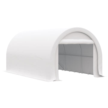 Outsunny 10' X 16' Carport, Heavy Duty Portable Garage Storage Tent With Large Zippered Door, Anti Uv Pe Canopy Cover For Car, Truck, Boat, Motorcycle, Bike, Garden Tools, Outdoor Work, White White Steel