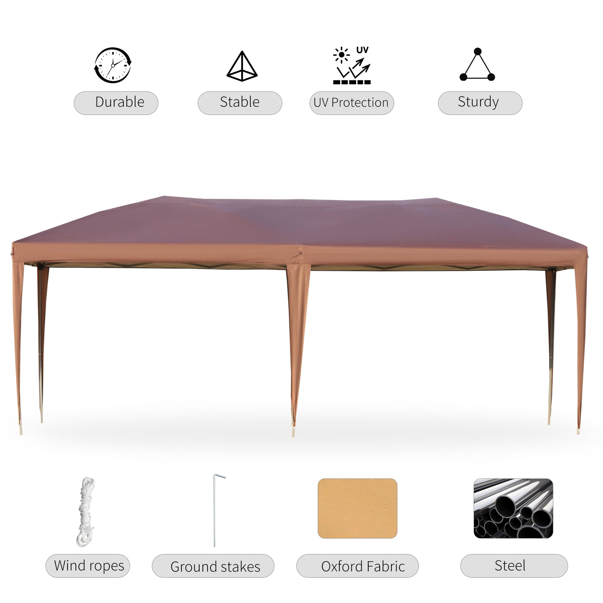 Outsunny 10' X 19.2' Pop Up Canopy Tent, Heavy Duty Tents For Parties, Outdoor Instant Gazebo Sun Shade Shelter With Carry Bag For Catering, Events, Wedding, Backyard Bbq, Coffee Brown Steel