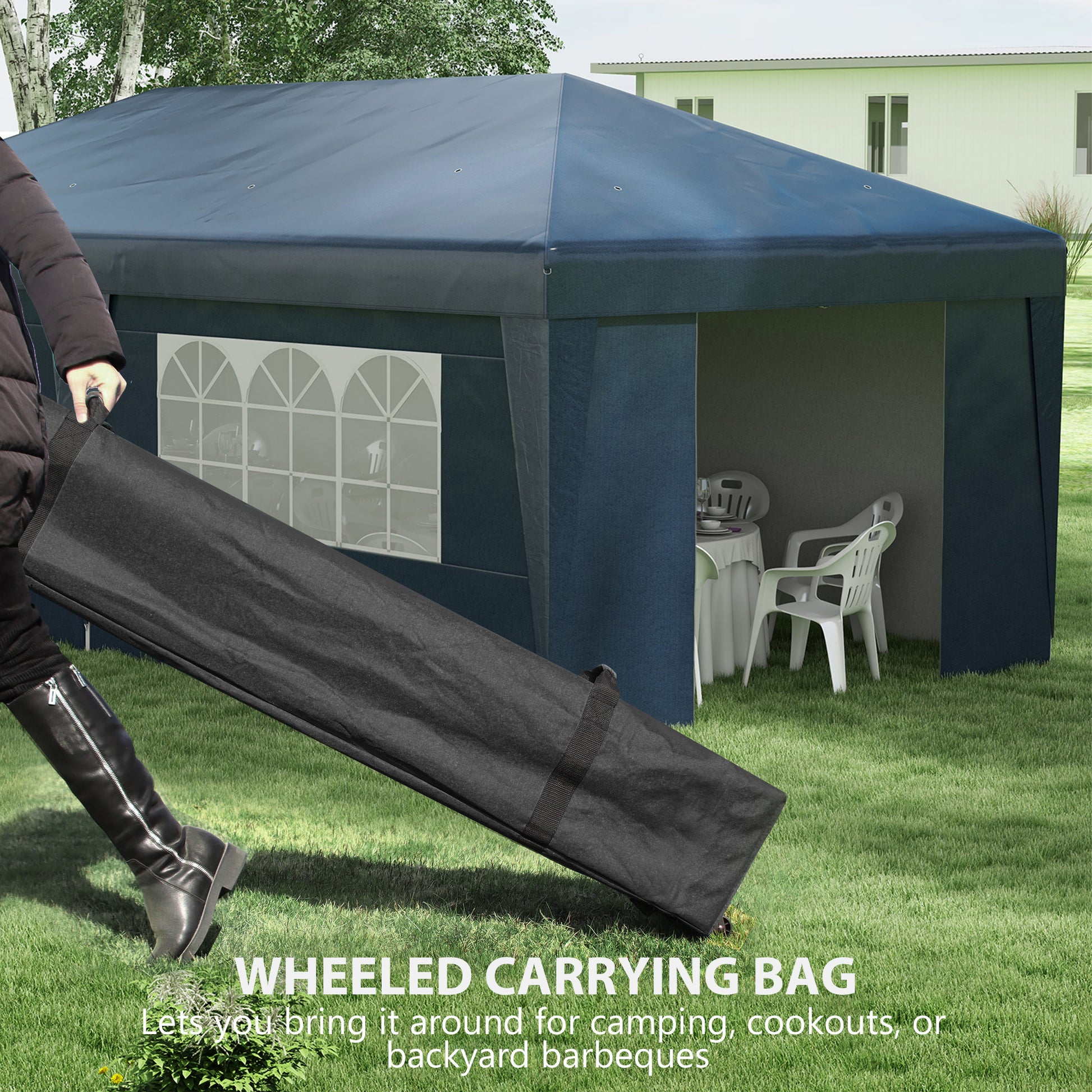Outsunny 10' X 19.5' Pop Up Canopy Tent With Sidewalls, Height Adjustable Large Party Tent Event Shelter With Leg Weight Bags, Double Doors And Wheeled Carry Bag For Garden, Patio, Dark Blue Blue Steel