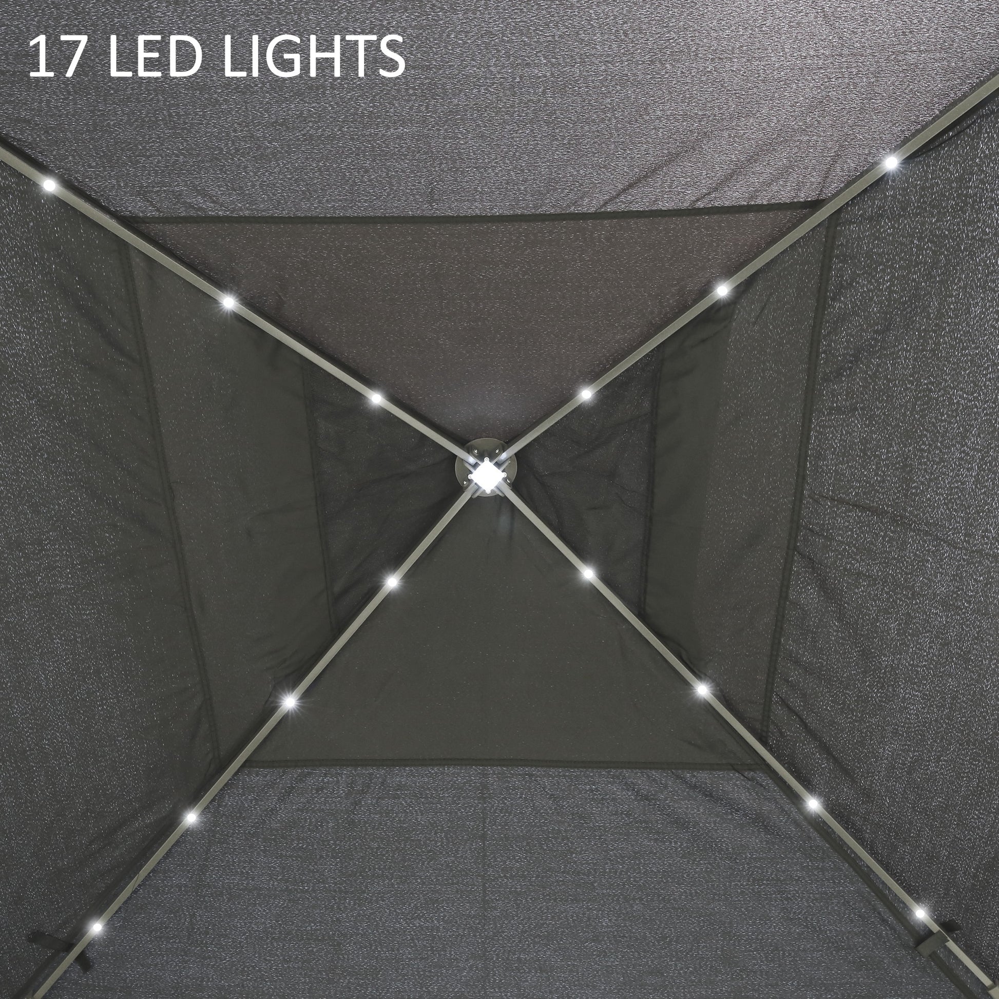 Outsunny 11' X 11' Pop Up Canopy, Instant Canopy Tent With Solar Led Lights, Remote Control, Zippered Mesh Sidewalls And Carrying Bag For Backyard Garden Patio, Gray Gray Steel