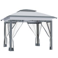 Outsunny 12' X 12' Pop Up Canopy Tent With Netting And Carry Bag, Instant Sun Shelter With 137 Sq.Ft Shade, Tents For Parties, Height Adjustable, For Outdoor, Garden, Patio, Gray Gray Steel