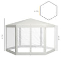 Outsunny 13' X 11' Outdoor Party Tent, Hexagon Sun Shade Shelter Canopy With Protective Mesh Screen Sidewalls, Ropes & Stakes, Cream White White Steel
