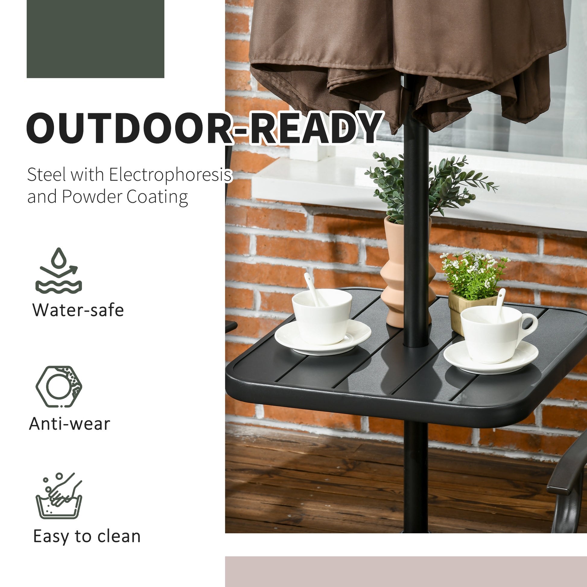 Outsunny 19" Beach Umbrella Table Tray, Slatted Instant Portable Beach Tables For Sand, Swimming Pools, Patio, Garden, Deck, Black Black Steel