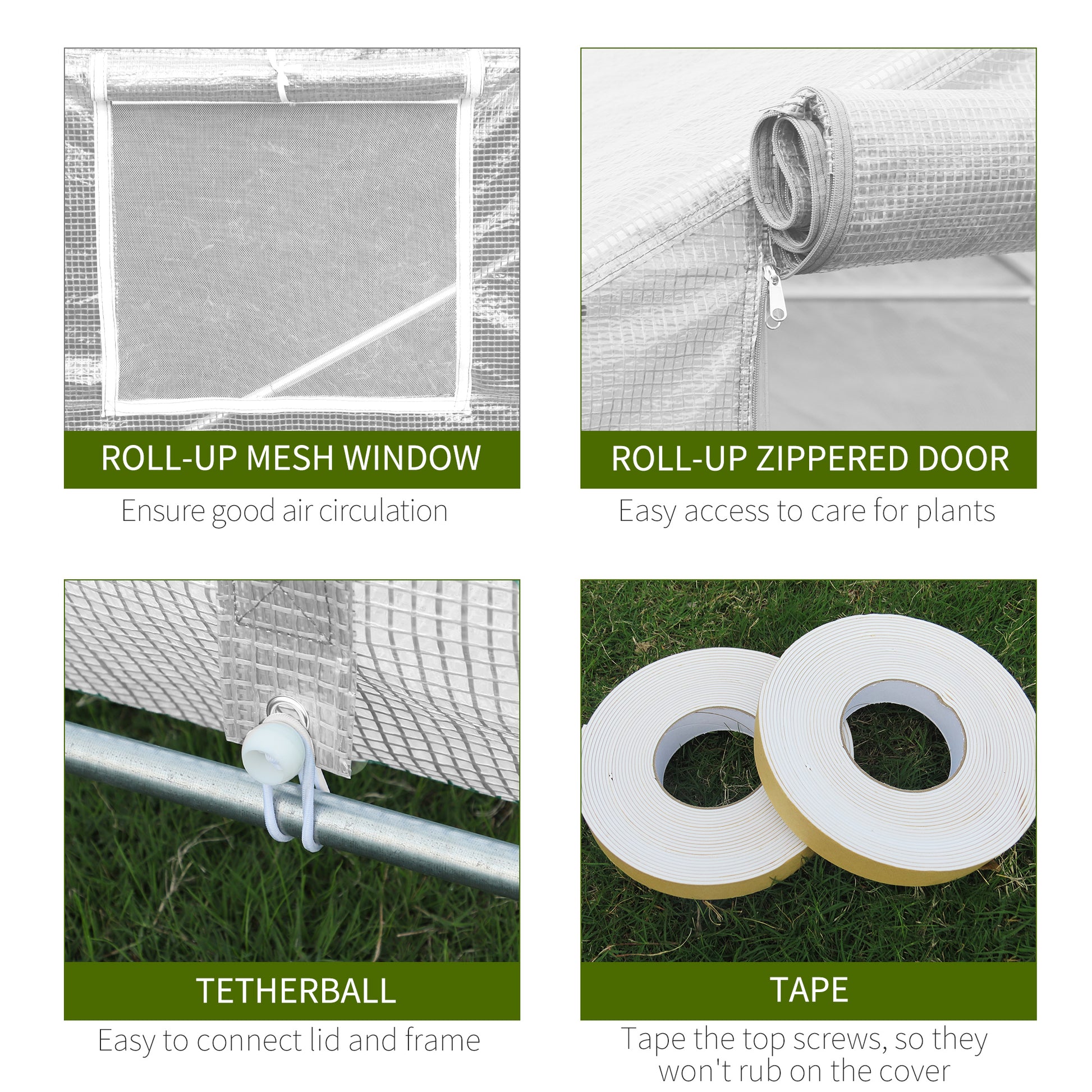 Outsunny 20' X 10' X 7' Walk In Tunnel Greenhouse With Zippered Mesh Door & 8 Mesh Windows, Gardening Plant Hot House With Galvanized Steel Hoops, White White Steel
