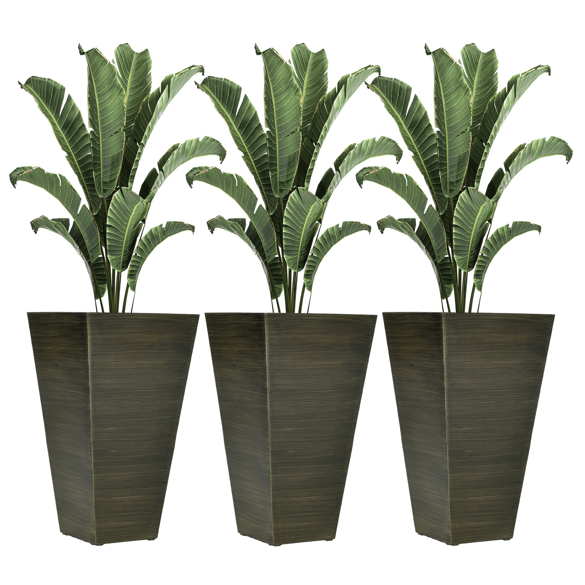 Outsunny 28" Tall Outdoor Planters, Set Of 3 Large Taper Planters With Drainage Holes And Plug, Faux Wood Plastic Flower Pots For Outdoor, Indoor, Garden, Patio, Dark Brown Brown Polypropylene