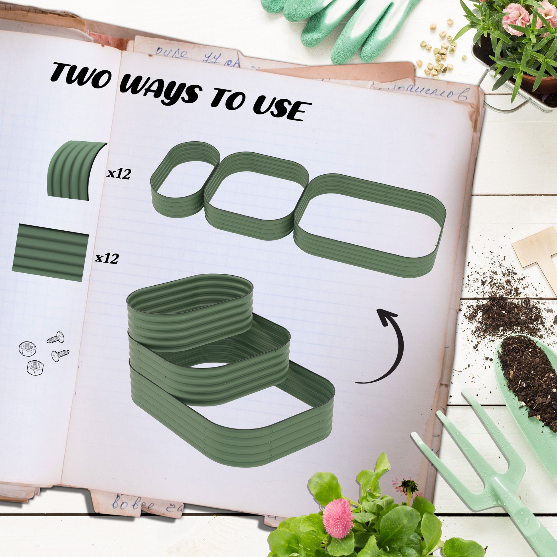 Outsunny 3 Tier Galvanized Steel Raised Garden Bed Kit, 62.25" X 43" X 32.25", 3 Combining Planter Boxes With Rubber Strip Edging, Open Bottom For Backyard, Garden, Patio, Green Green Zinc