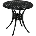 Outsunny 30" Round Patio Dining Table With Umbrella Hole, Antique Cast Aluminum Outdoor Bistro Table Only, Black Black Aluminium