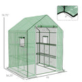 Outsunny 4.6' X 4.7' Portable Greenhouse, Water Uv Resistant Walk In Small Outdoor Greenhouse With 2 Tier U Shaped Flower Rack Shelves, Roll Up Door & Windows, Green Green Steel