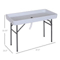 Outsunny 4Ft Portable Folding Fish Fillet Cleaning Table Camping Picnic Ice Party Desk With Sink White Metal