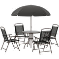 Outsunny 6 Piece Patio Dining Set For 4 With Umbrella, Outdoor Table And Chairs With 4 Folding Dining Chairs & Round Glass Table For Garden, Backyard And Poolside, Black Black Steel