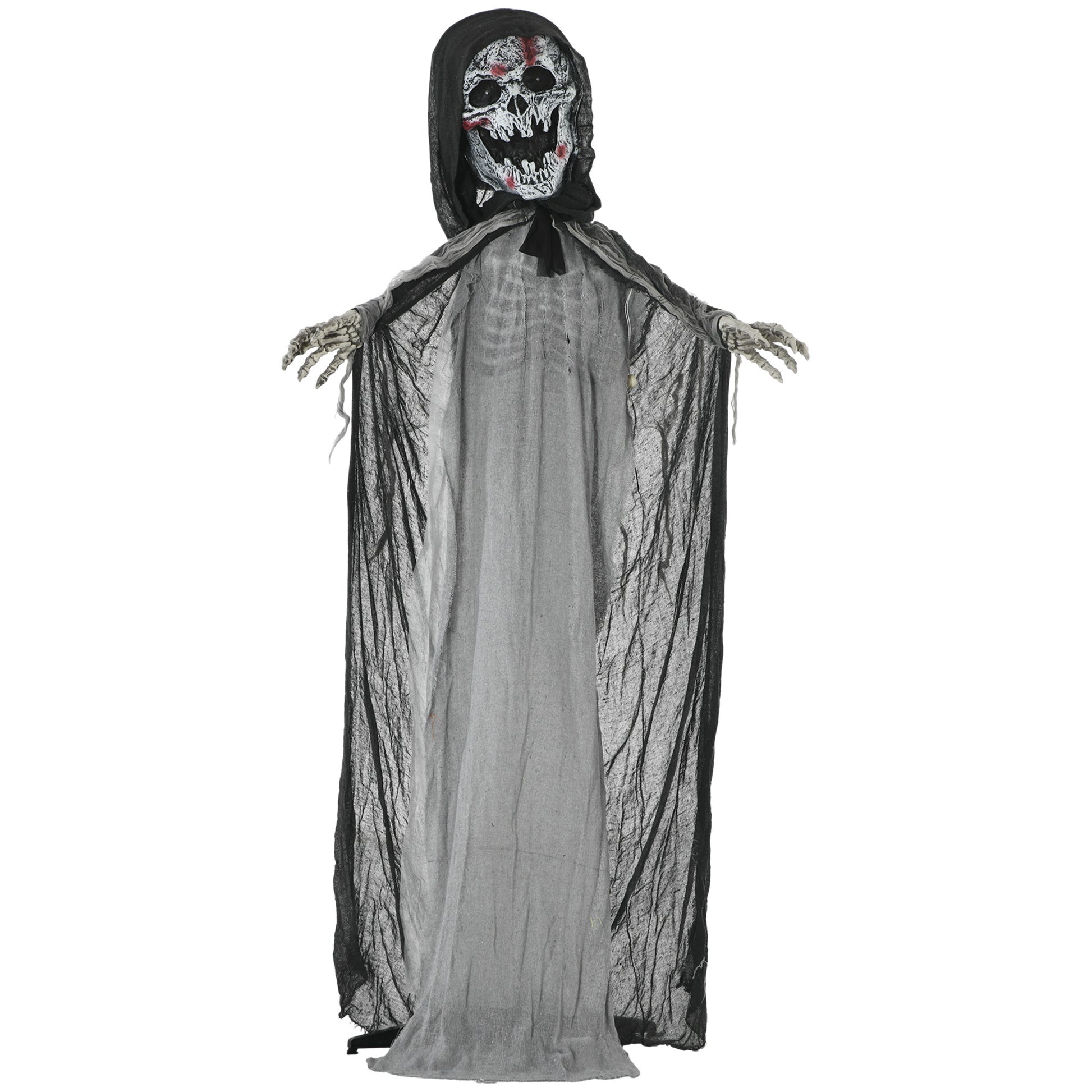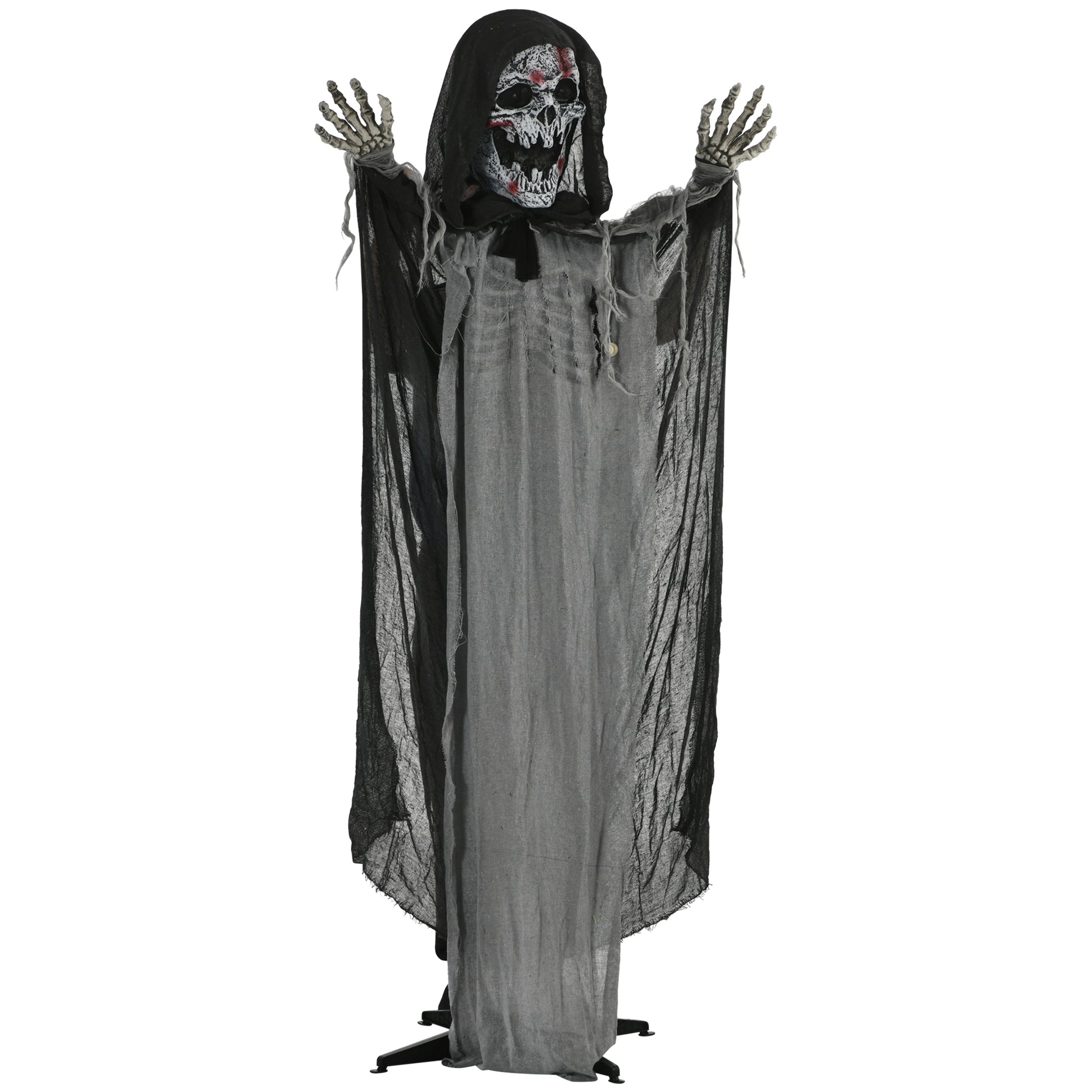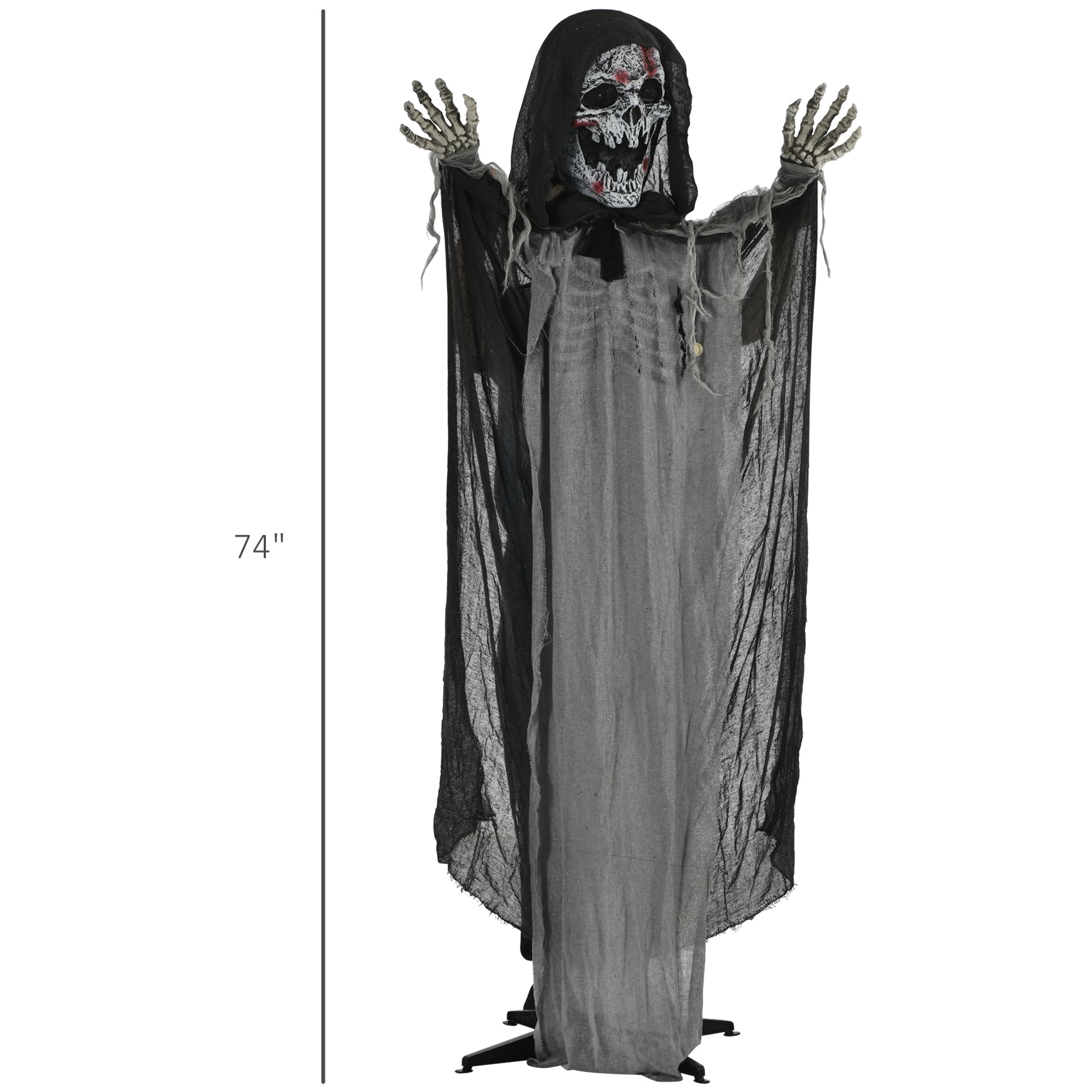 Outsunny 74" Life Size Outdoor Halloween Decorations Skeleton Witch, Animated Prop Animatronic Decor With Sound And Motion Activated, Light Up Eyes And Chest, Howling And Chain Sound Grey Polyester