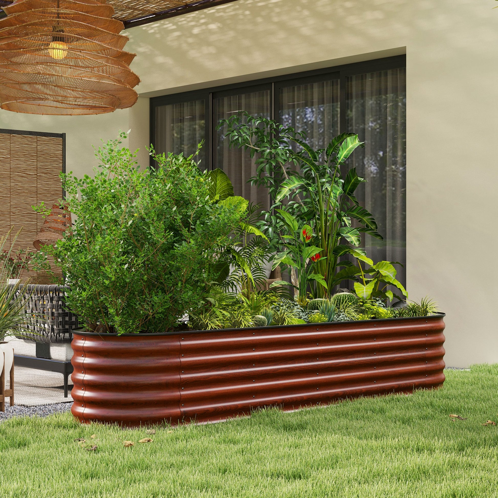Outsunny 8' X 2' X 1.4' Galvanized Raised Garden Bed Kit, Outdoor Metal Elevated Planter Box With Safety Edging, Easy Diy Stock Tank For Growing Flowers, Herbs & Vegetables, Brown Brown Steel