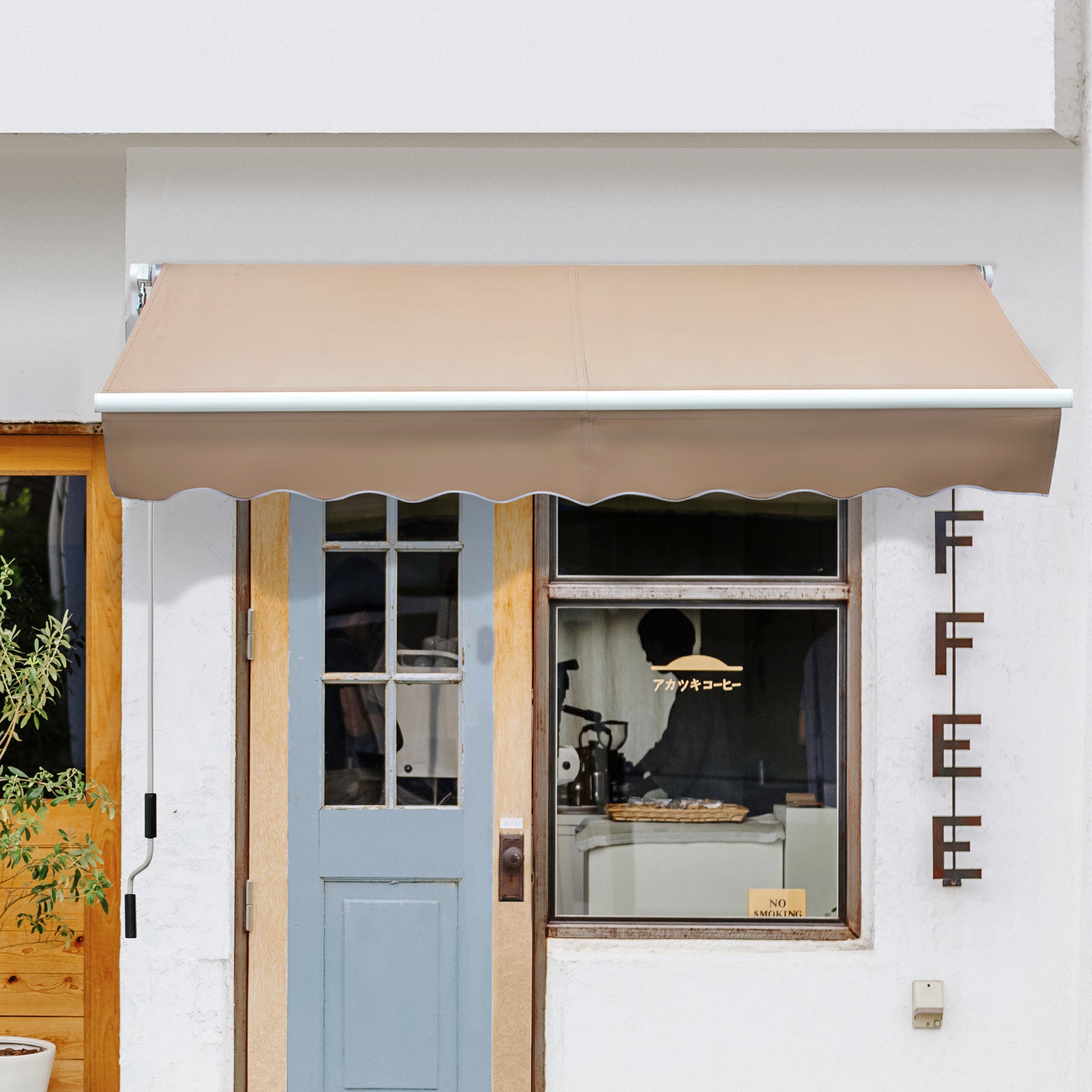 Outsunny 8' X 7' Patio Retractable Awning, Manual Exterior Sun Shade Deck Window Cover, Brown Brown Aluminum