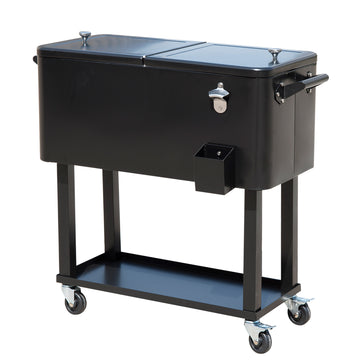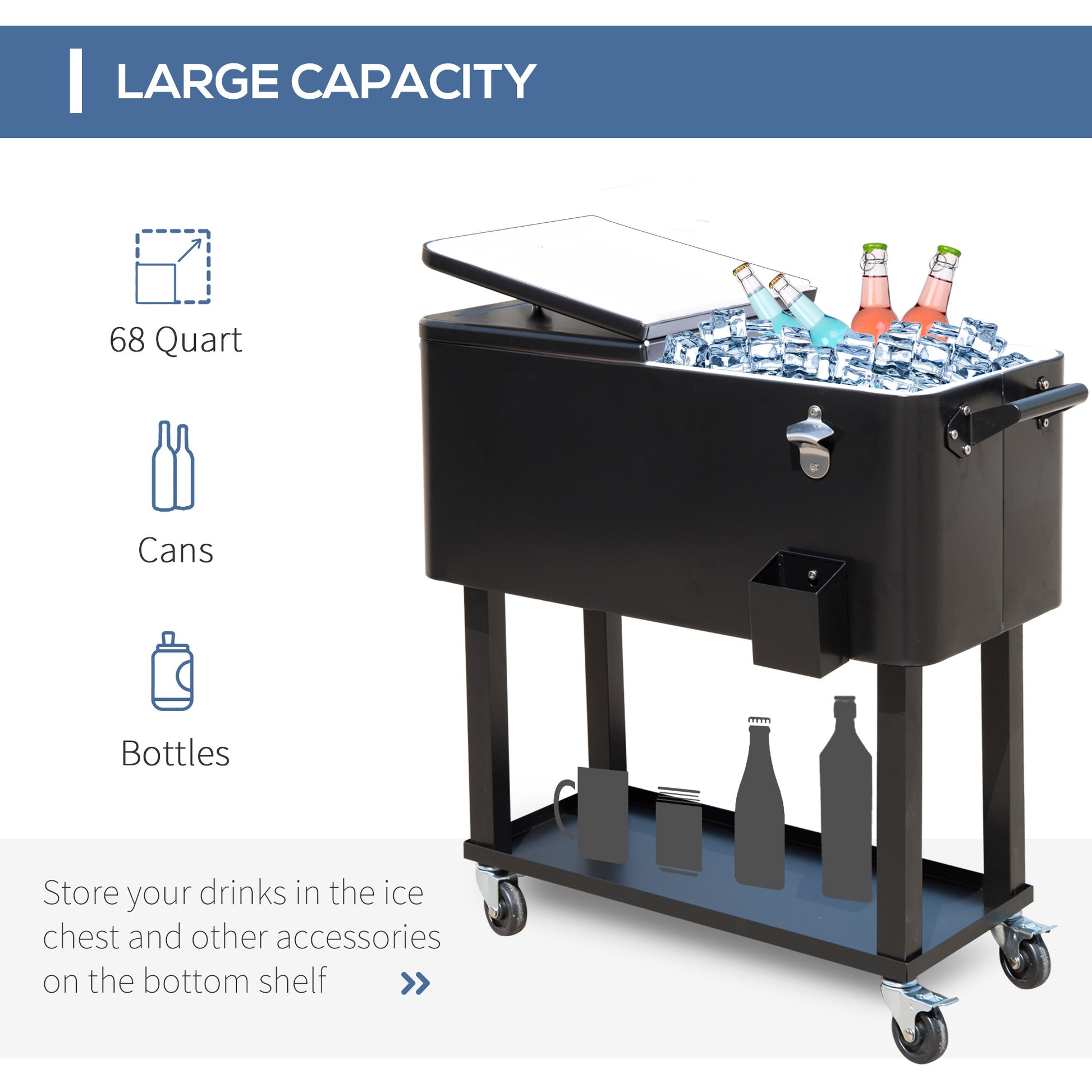 Outsunny 80 Qt Rolling Cooling Bins Ice Chest On Wheels Outdoor Stand Up Drink Cooler Cart For Party, Black Black Plastic