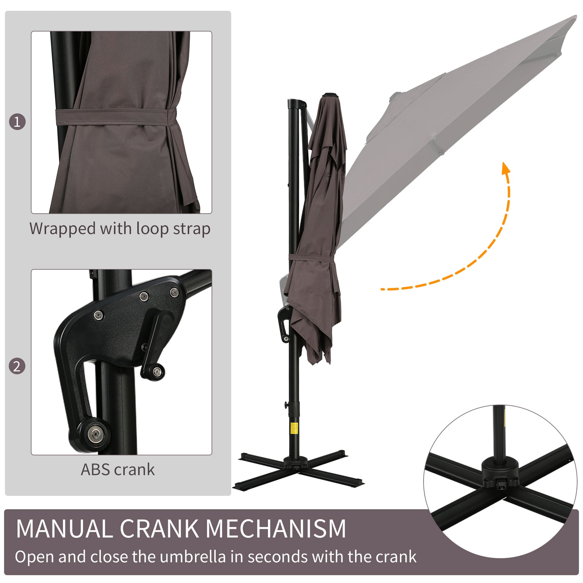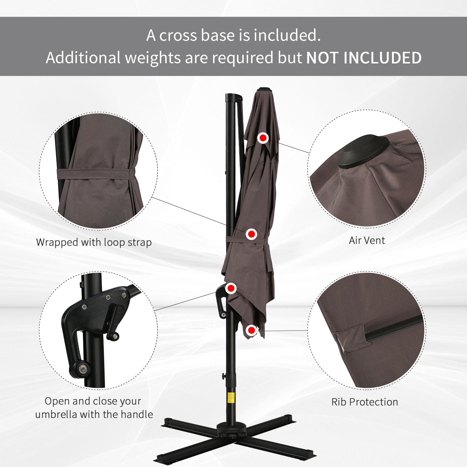 Outsunny 8Ft Cantilever Patio Umbrella, Square Outdoor Offset Umbrella With 360 Rotation, Aluminum Hanging Umbrella With 3 Position Tilt, Crank & Cross Base For Garden, Brown Brown Aluminum