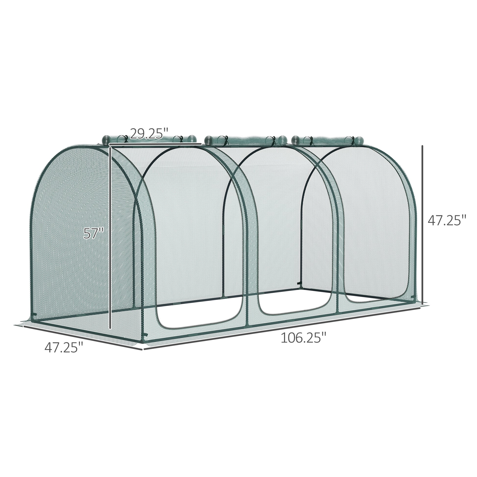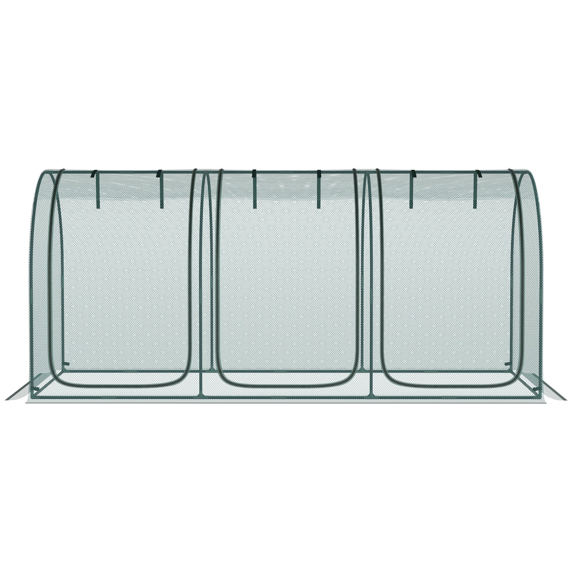 Outsunny 9' X 4' Crop Cage, Plant Protection Tent With Three Zippered Doors, Storage Bag And 6 Ground Stakes, For Garden, Yard, Lawn, Green Green Steel