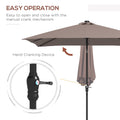 Outsunny 9' X 7' Solar Umbrella, Led Lighted Patio Umbrella For Table Or Base With Tilt & Crank, Outdoor Umbrella For Garden, Deck, Backyard, Pool, Beach, Tan Brown Steel
