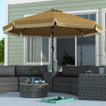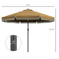 Outsunny 9Ft Patio Umbrella With Push Button Tilt And Crank, Ruffled Outdoor Market Table Umbrella With Tassles And 8 Ribs, For Garden, Deck, Pool, Tan Tan Polyester
