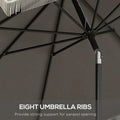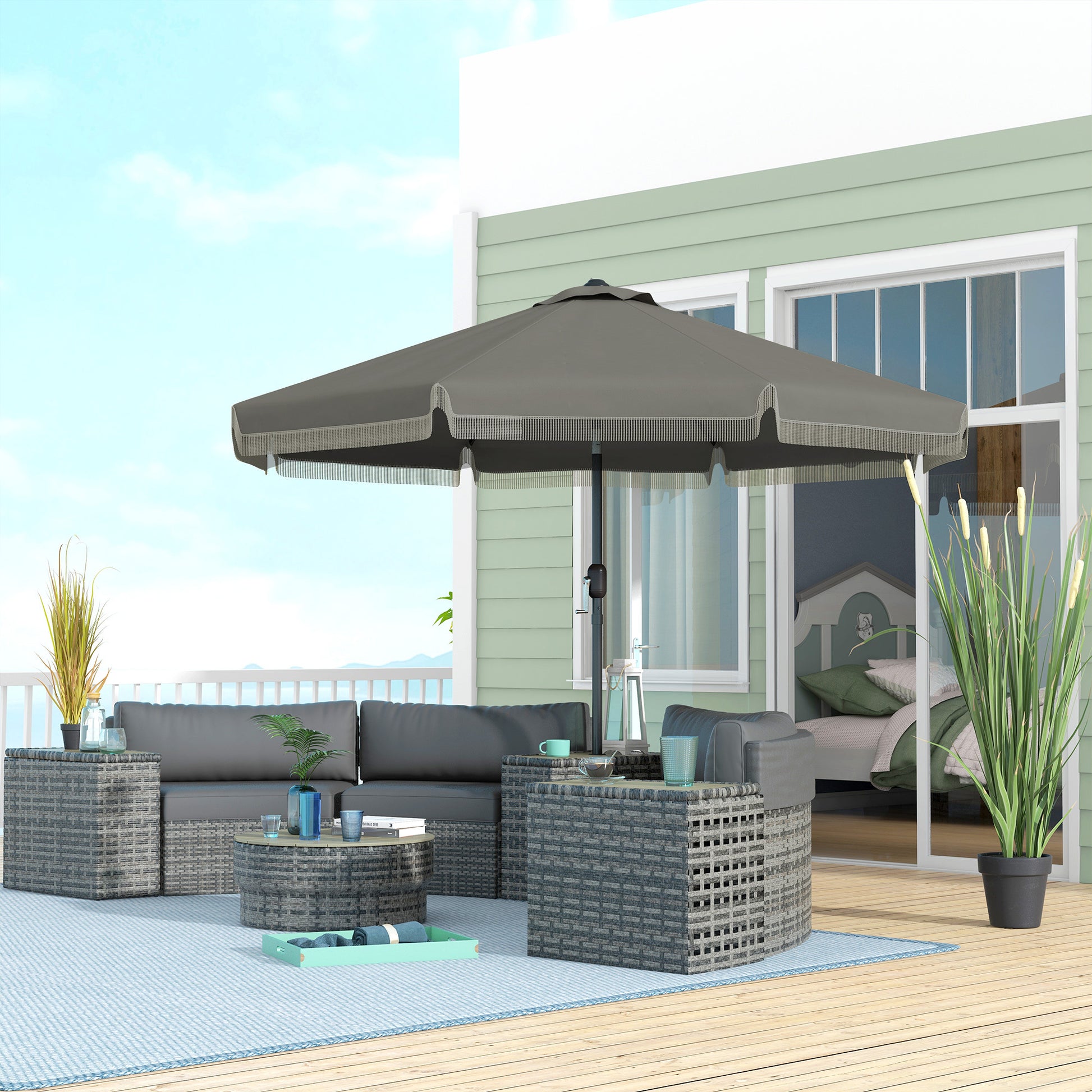Outsunny 9Ft Patio Umbrella With Push Button Tilt And Crank, Ruffled Outdoor Market Table Umbrella With Tassles And 8 Ribs, For Garden, Deck, Pool, Dark Gray Dark Grey Polyester