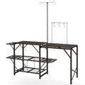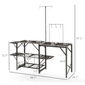 Outsunny Folding Camp Kitchen Table, Portable Camping Cooking Station With Adjustable Lantern Holder, Hanging Hooks And Carrying Bag For Outdoor Picnic Beach Bbq Traveling Black Metal