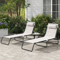 Outsunny Folding Chaise Lounge Pool Chair Set Of 2, Patio Sun Tanning Chair, Outdoor Lounge Chair With 4 Position Reclining Back,Mesh Seat For Beach, Yard, Patio, Cream Cream White Steel